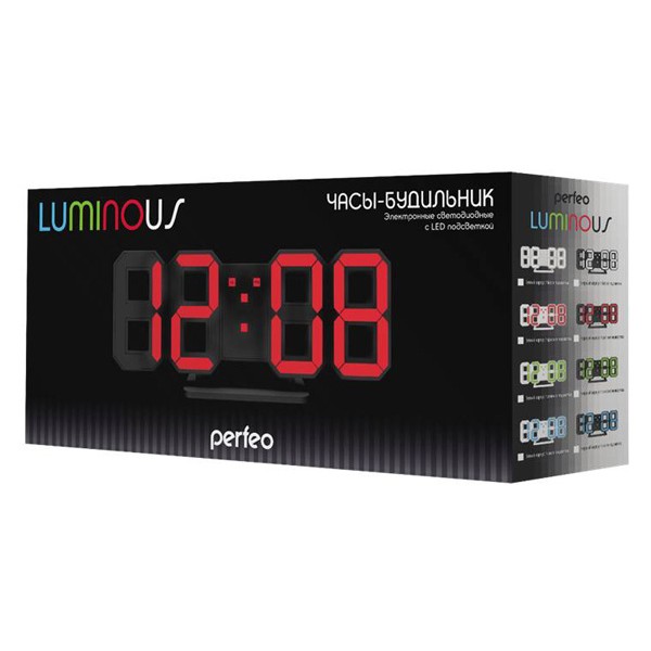 Часы-будильник Perfeo LED Luminous, черный корпус / зелёная подсветка (PF-663)