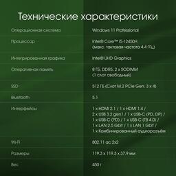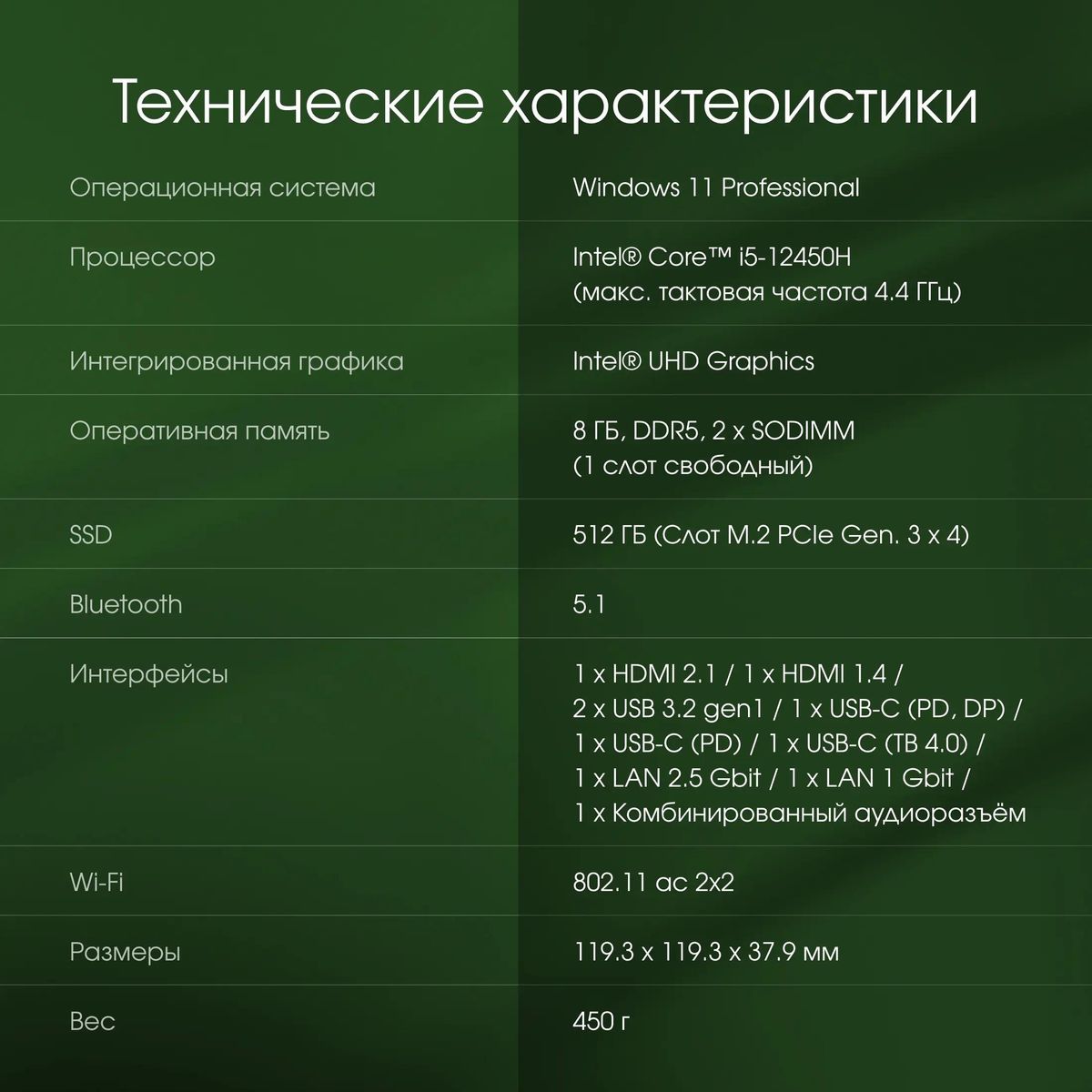 Неттоп DIGMA PRO Minimax X1, Intel Core i5 12450H, DDR5 8ГБ, 512ГБ(SSD), Intel UHD Graphics, Windows 11 Professional, серый [dpp5-8dxw02]
