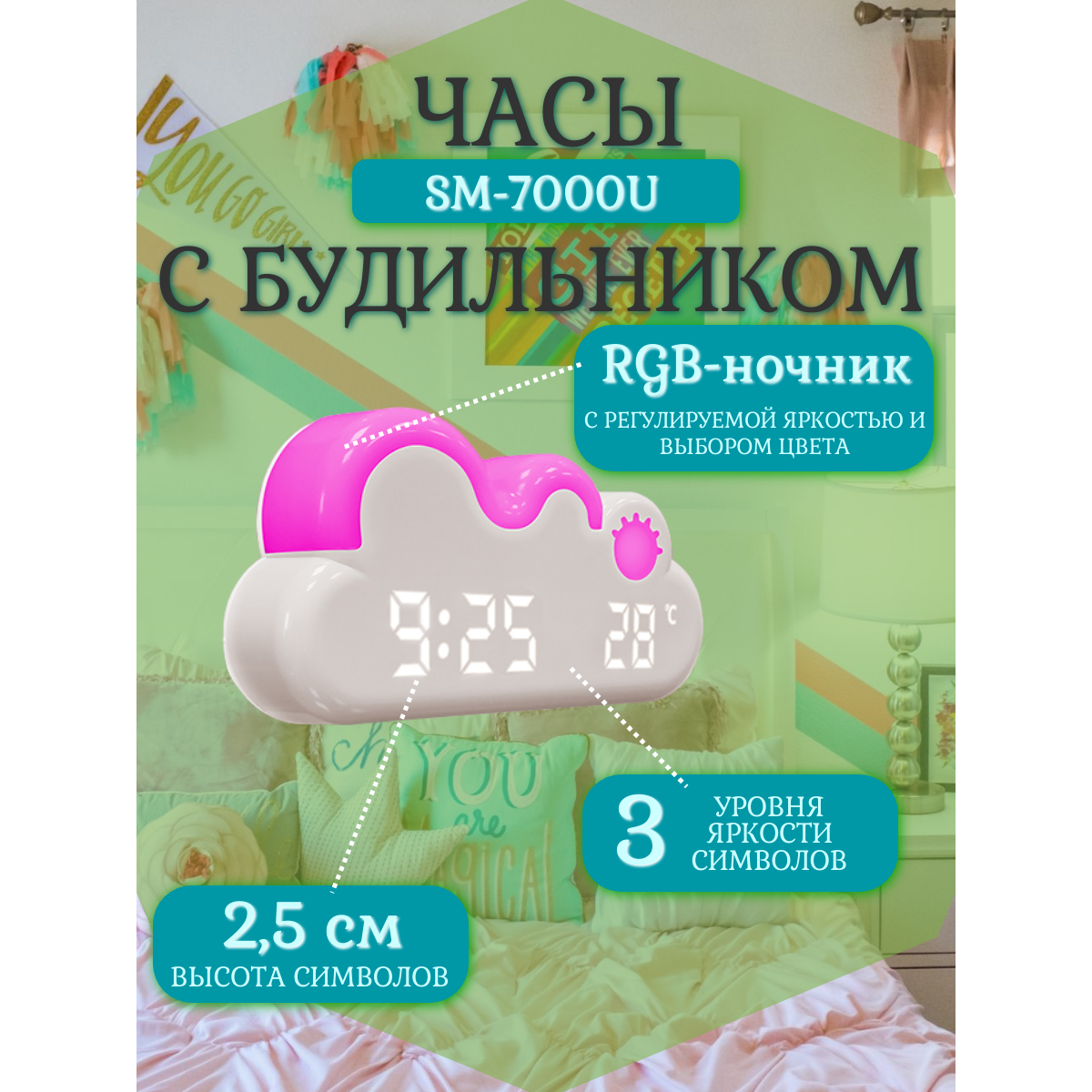 Часы с будильником SOUNDMAX SM-7000U(белый)