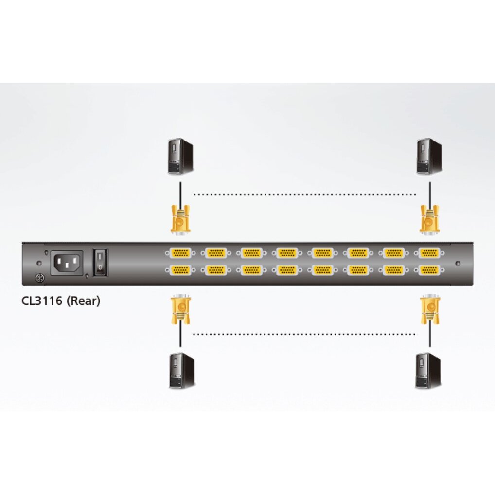 KVM-переключатель Aten CL3116NX-ATA-RG 18.5" 16-Port PS/2-USB VGA Single Rail WideScreen LCD KVM Switch