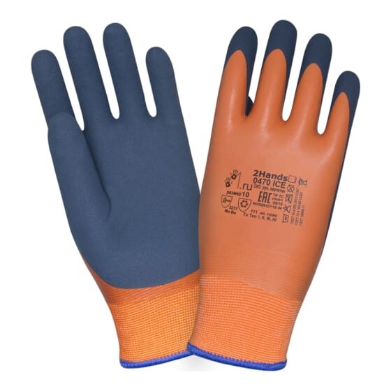 Перчатки утепленные 2Hands 0470 ICE -9 acrylic 7G duble latex Ultrafoam Microfoam р-р 9
