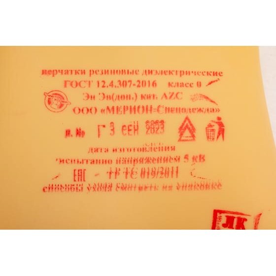 Перчатки диэлектрические Мерион ПЕР121.3 класс 0 ГОСТ 12.4.307-2016 размер 3
