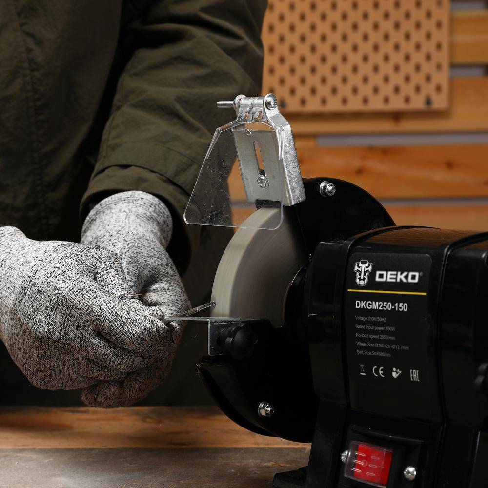 ОписаниеСтанок заточной (точило) DEKO DKGM300-150 используется для заточки и шлифования инструмента. Модель отличается небольшими габаритами, что существенно облегчает его транспортировку. Шлифовальные диски закрыты защитными кожухами, которые обеспечивают безопасность оператора.