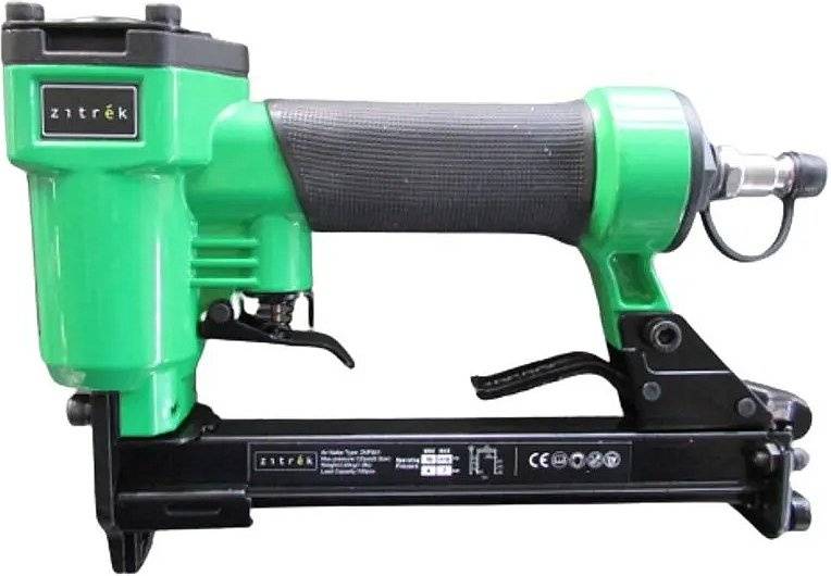 ОсобенностиТип скоб: 80 (21GA), длина 6-16 мм, ширина -12,8 мм, сечение 0,65 х 0,95 мм. Инструмент работает на сжатом воздухе, что значительно продлевает его время работы без остановки и снижает пожаро- и взрывоопасность рабочего процесса. Рукоятка пневмостеплера оснащена прорезиненной накладкой.