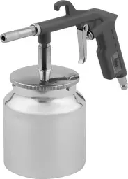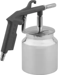 ОписаниеПневмопистолет пескоструйный с бачком. Используется для шлифовки деревянных, металлических, каменных поверхностей и подготовке их к нанесению лакокра сочных материалов. Продув совершается выходящим под давлением воздухом с абразивным веществом, которое подается через специальный шланг из бачка.