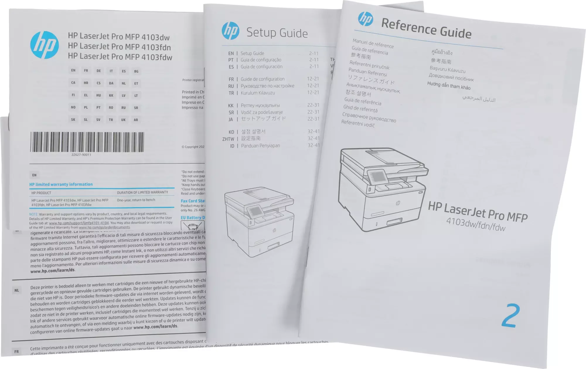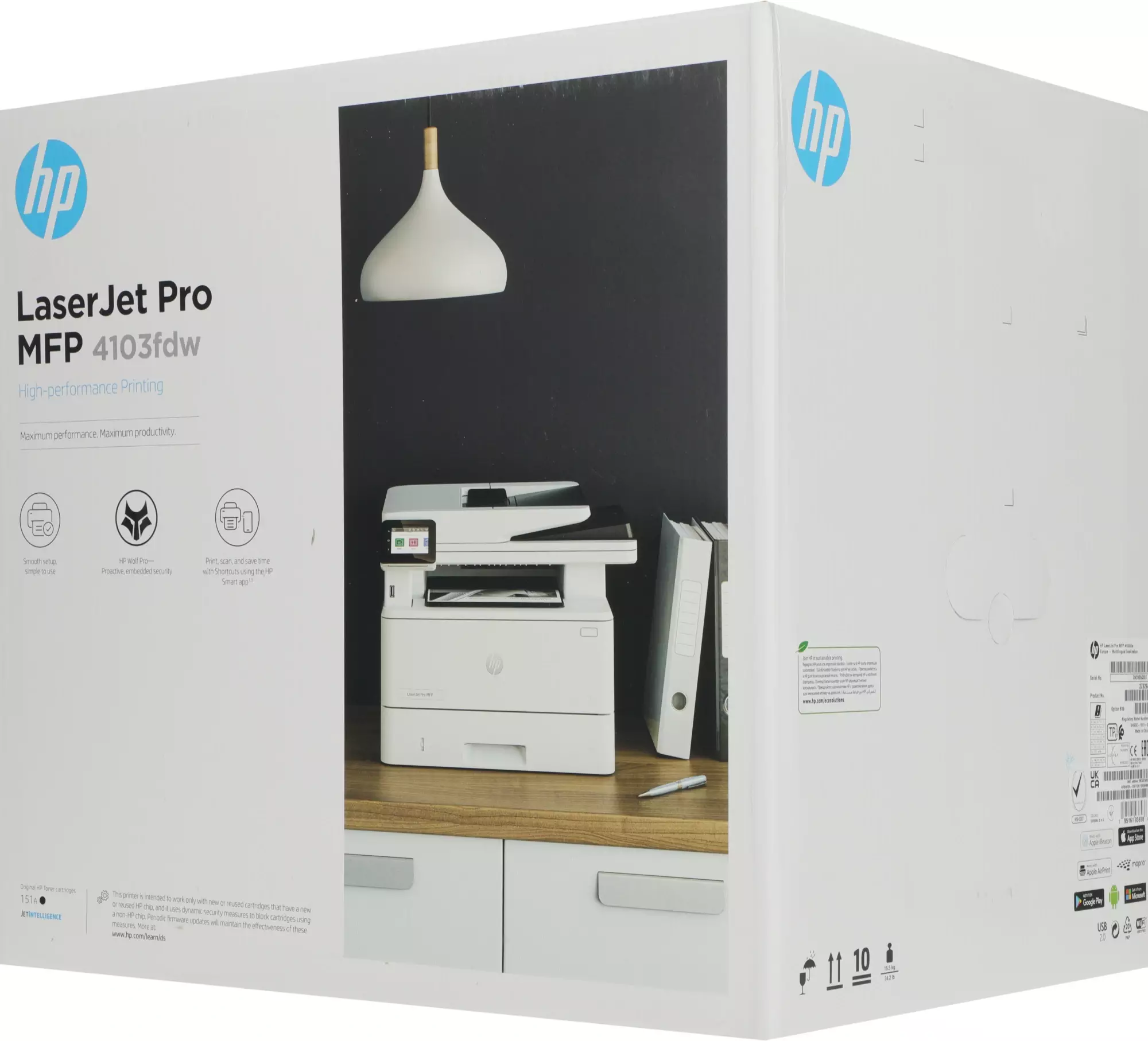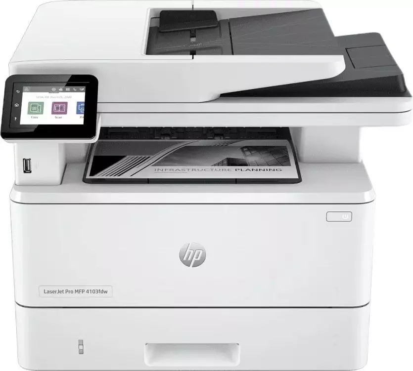 Комплектация2Z629A МФУ HP LaserJet Pro 4103fdw; стартовый картридж черный (3050 страниц); руководство по началу работы; листовка с нормативными требованиями; кабель питания; кабель USB