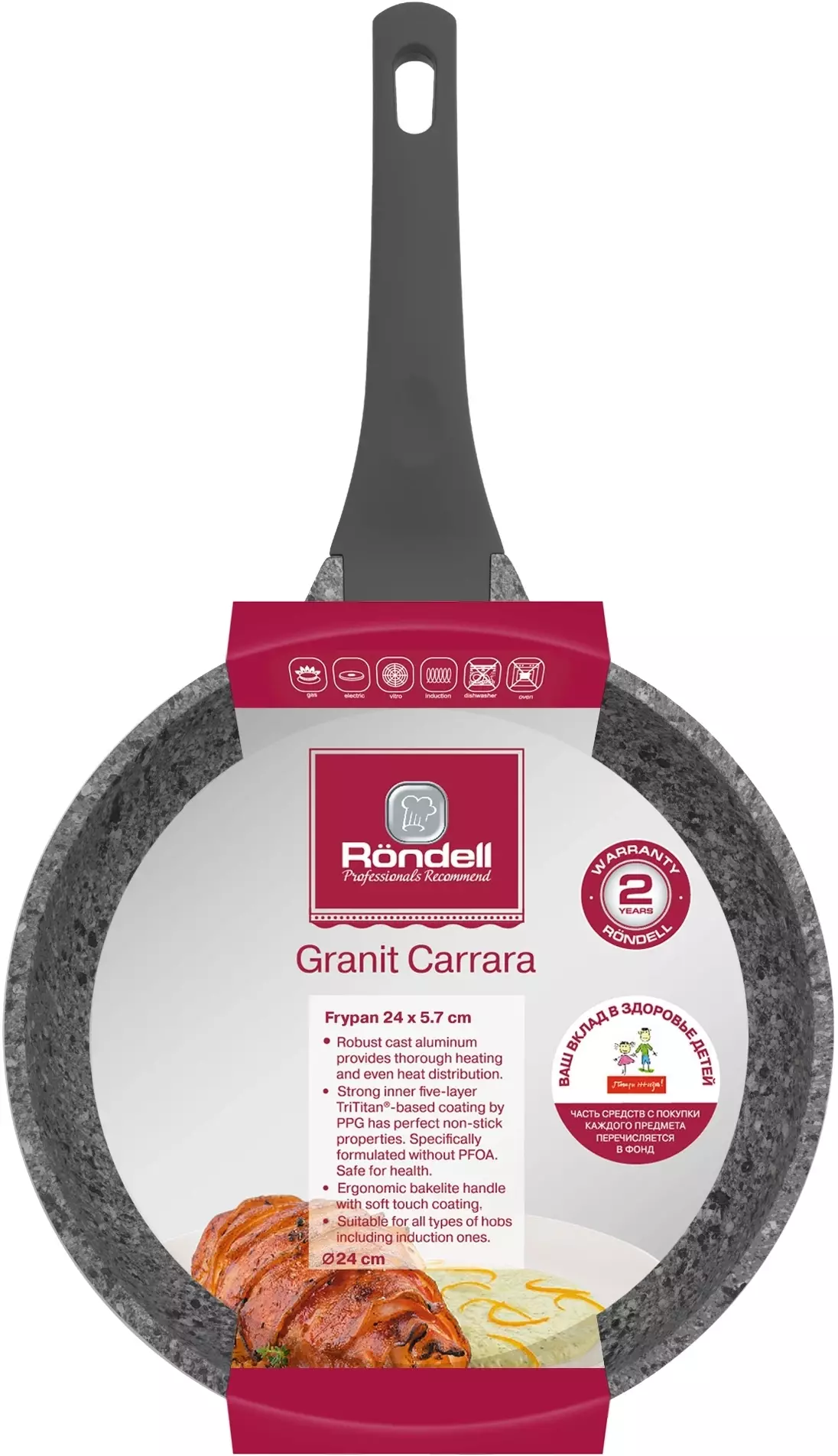 Сковорода Rondell Granit Carrara RDA-1844, 24см, серый, Quantum2 покрытие, без крышки