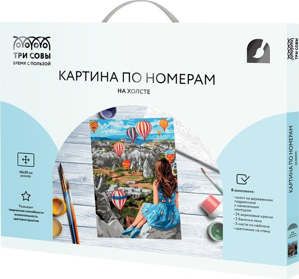 - Комплектация кисти (3 шт.), краски, крепление, лак, холст