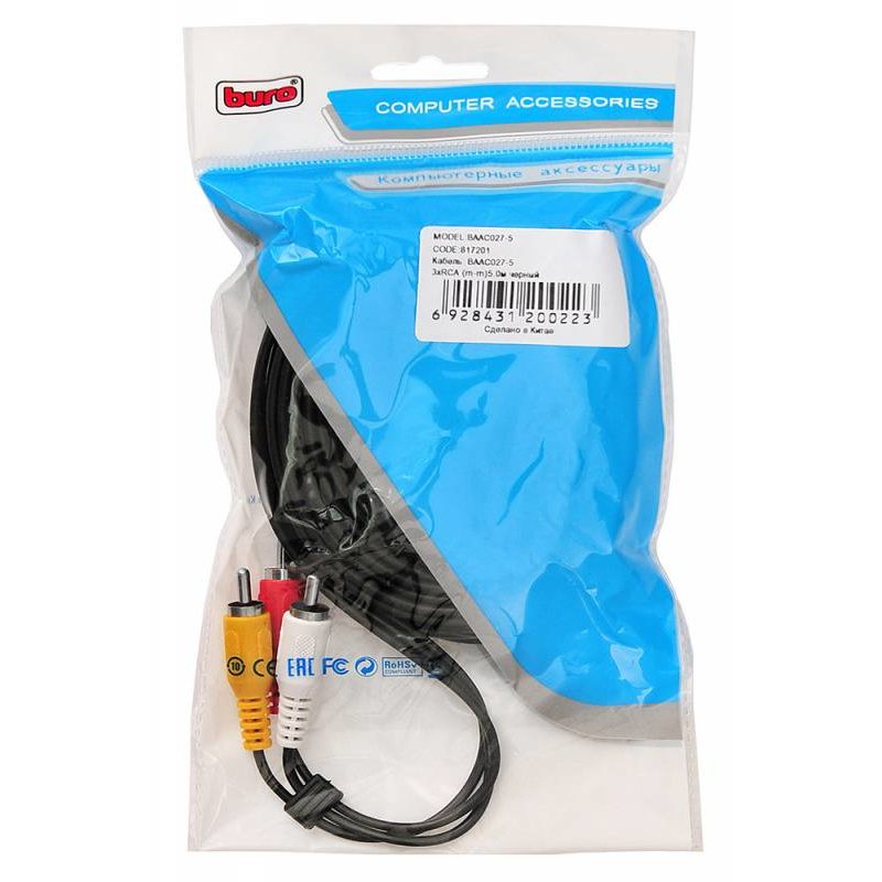 Кабель соединительный аудио-видео Buro 3хRCA (m)/3хRCA (m) 1м черный (BAAC027-1)