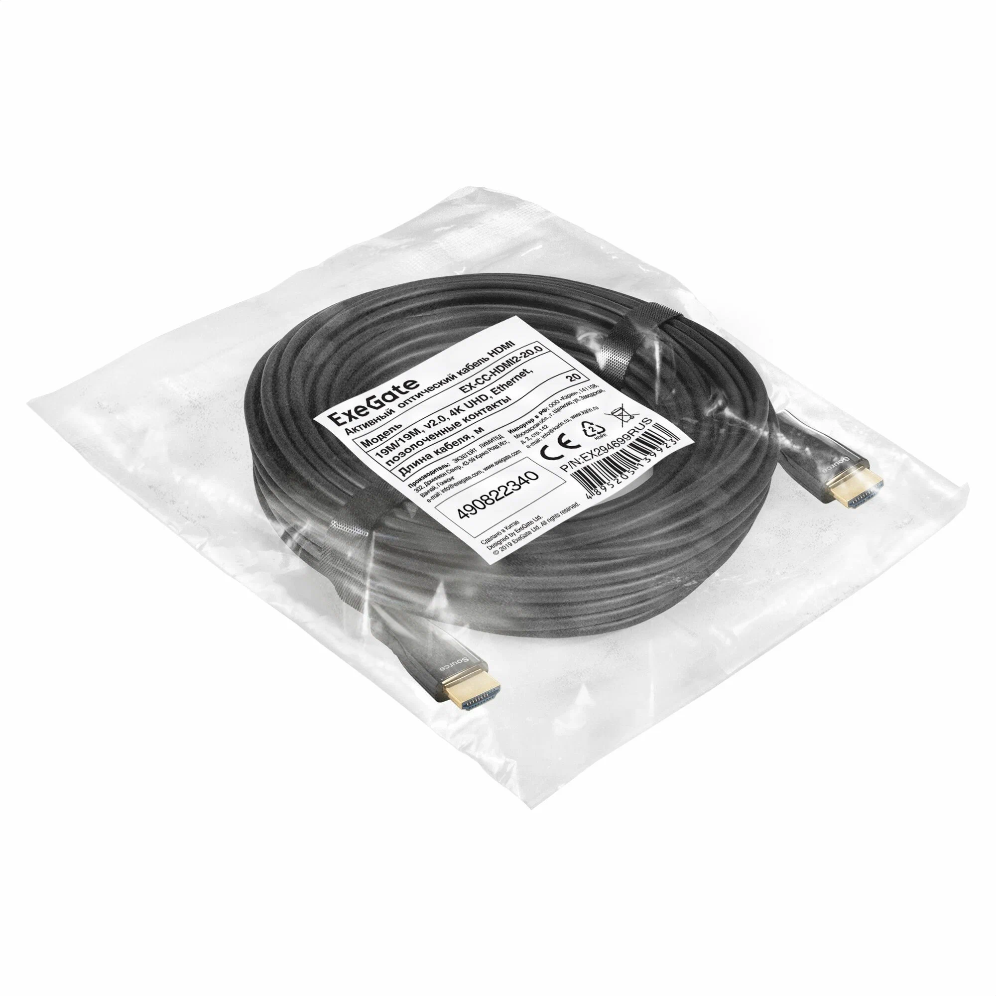 Активный оптический кабель ExeGate EX294699RUS HDMI EX-CC-HDMI2-20.0 (19M/19M, v2.0, 20м, 4K UHD, Ethernet, позолоченные контакты)