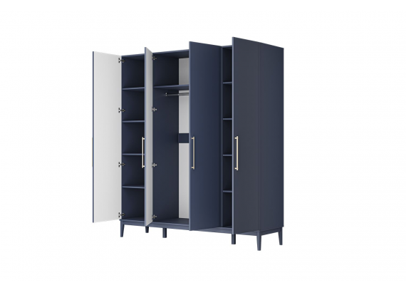 Шкаф 4-створчатый Джали ШР-4 Ночное небо/Темный лазурный – это элегантное и практичное решение для вашей спальни, сочетающее функциональность и стиль. Изготовленный в глубоком темно-синем цвете, шкаф станет ярким акцентом в вашем интерьере, добавив нотку изысканности и современности.