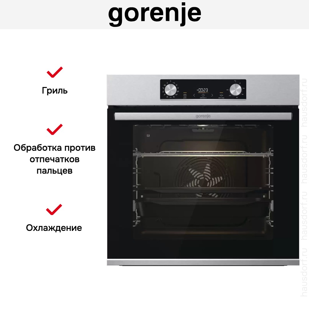 Готовьте свои лучшие блюда и пробуйте новые рецепты с духовым шкафом Gorenje BPS6737E14X! Стандартные размеры и большой объем внутренней камеры — выбор тех, кто много готовит для семьи или частых праздничных встреч с друзьями. Желательно заранее продумать расположение такой модели в кухонном гарнитуре.