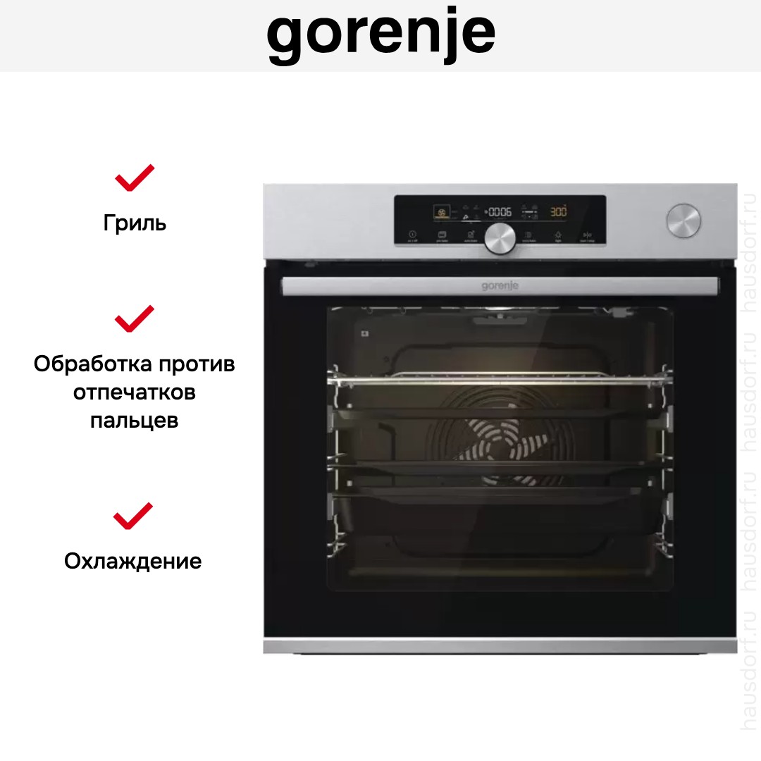 Готовьте свои лучшие блюда и пробуйте новые рецепты с духовым шкафом Gorenje BPSA6747A08X! Стандартные размеры и большой объем внутренней камеры — выбор тех, кто много готовит для семьи или частых праздничных встреч с друзьями. Желательно заранее продумать расположение такой модели в кухонном гарнитуре.