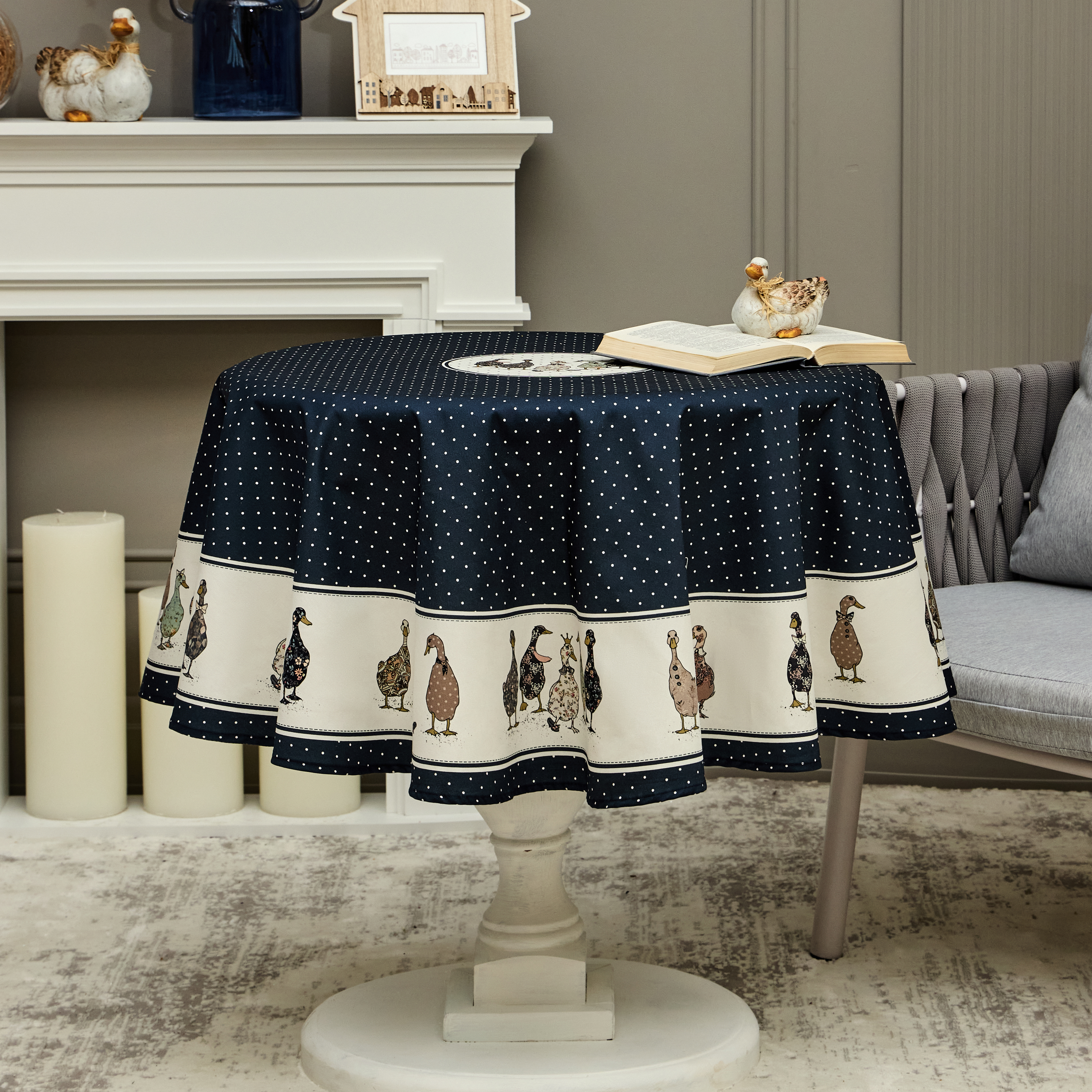 СКАТЕРТЬ КРУГЛАЯ "FAMILY FARM" 150СМ ,СИНИЙ, 100% ХЛОПОК, ТВИЛ, С ПРОПИТКОЙ 850-742-23