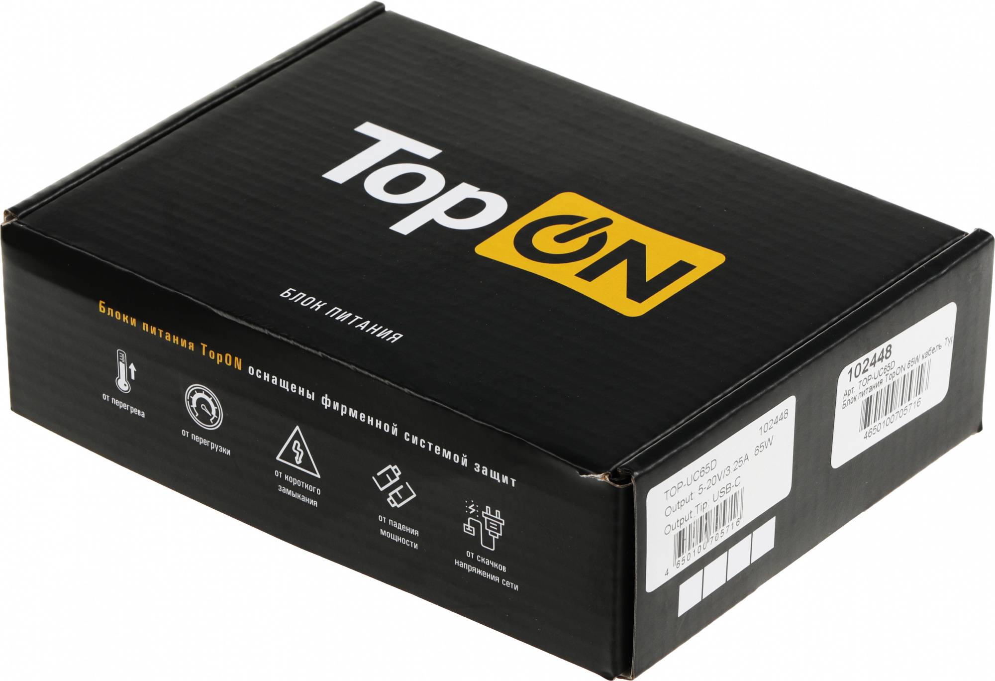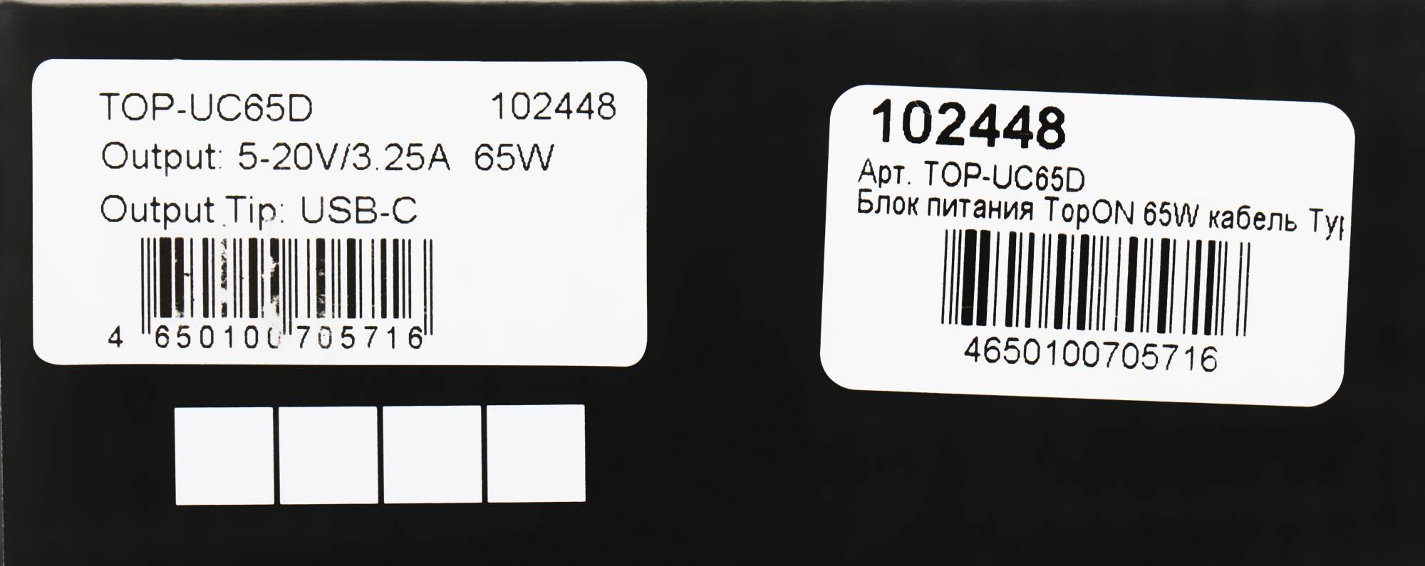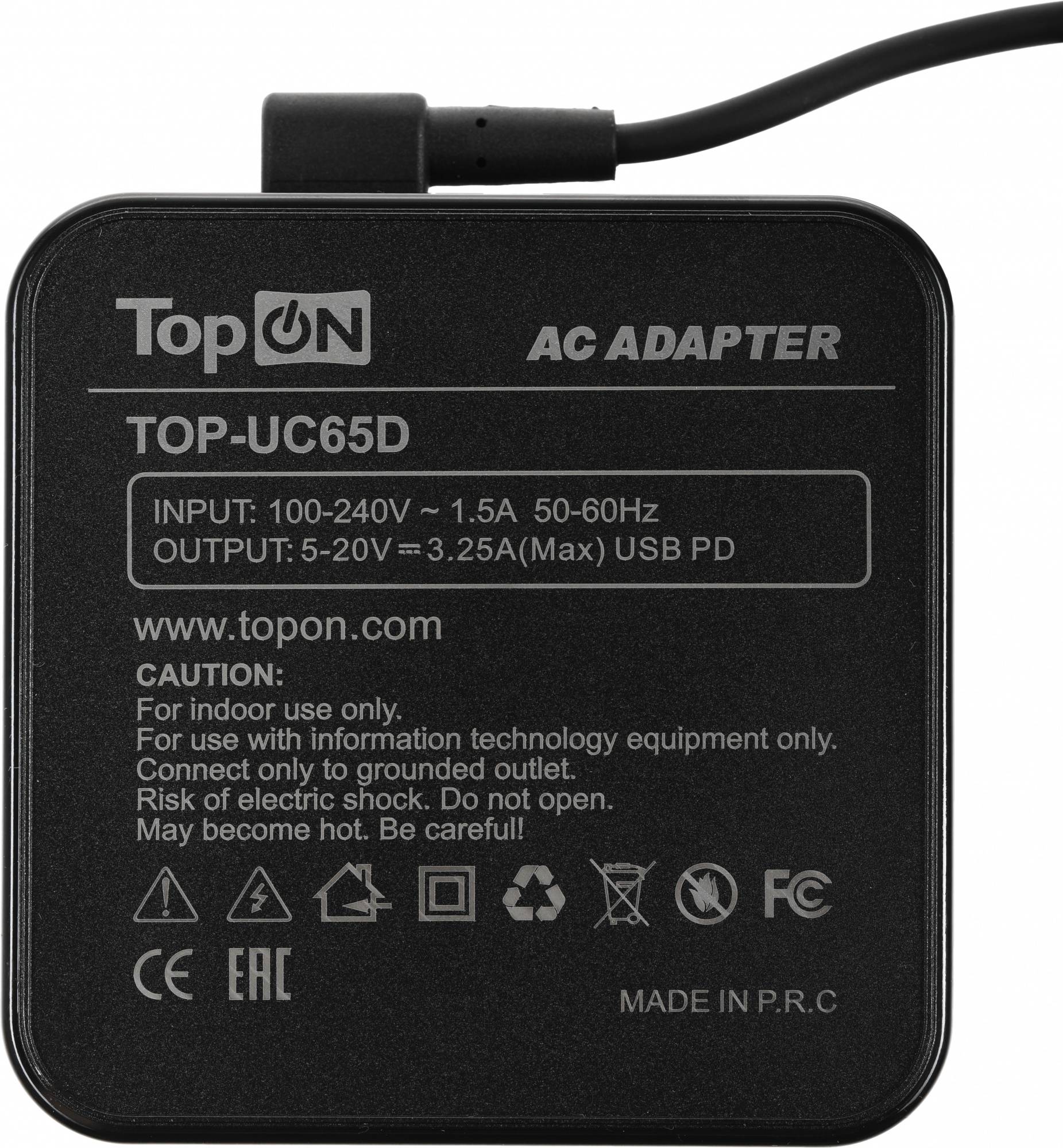 • Описание Блок питания TopON 65W кабель Type-C, Power Delivery, Quick Charge 3.0, настольный, кабель 170 см / 110 см TOP-UC65D