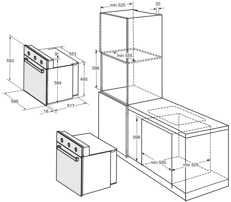 ОсобенностиВстраиваемый электрический шкаф с металлическим фасадом цвета антрацит, 4 режима работы, тангенциальное охлаждение, электромеханический таймер, подсветка, , гриль, терморегулятор.