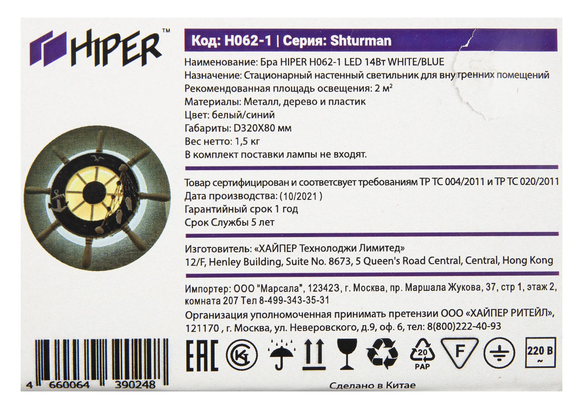 • PartNumber/Артикул Производителя H062-1