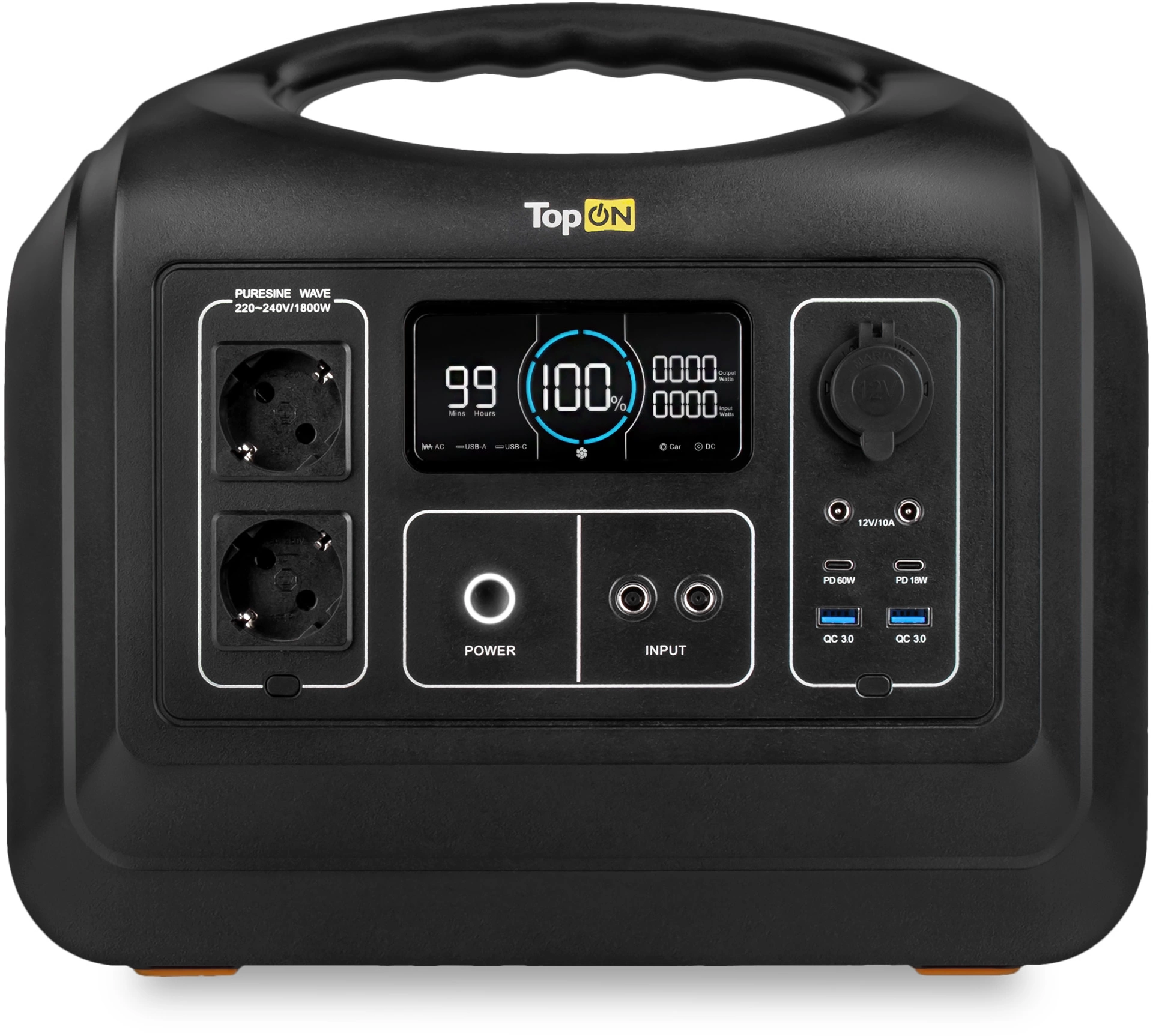 Электростанция портативная TopON TOP-X1800 465000mAh 10A QC3.0/PD3.0 4xUSB черный/оранжевый (103259)