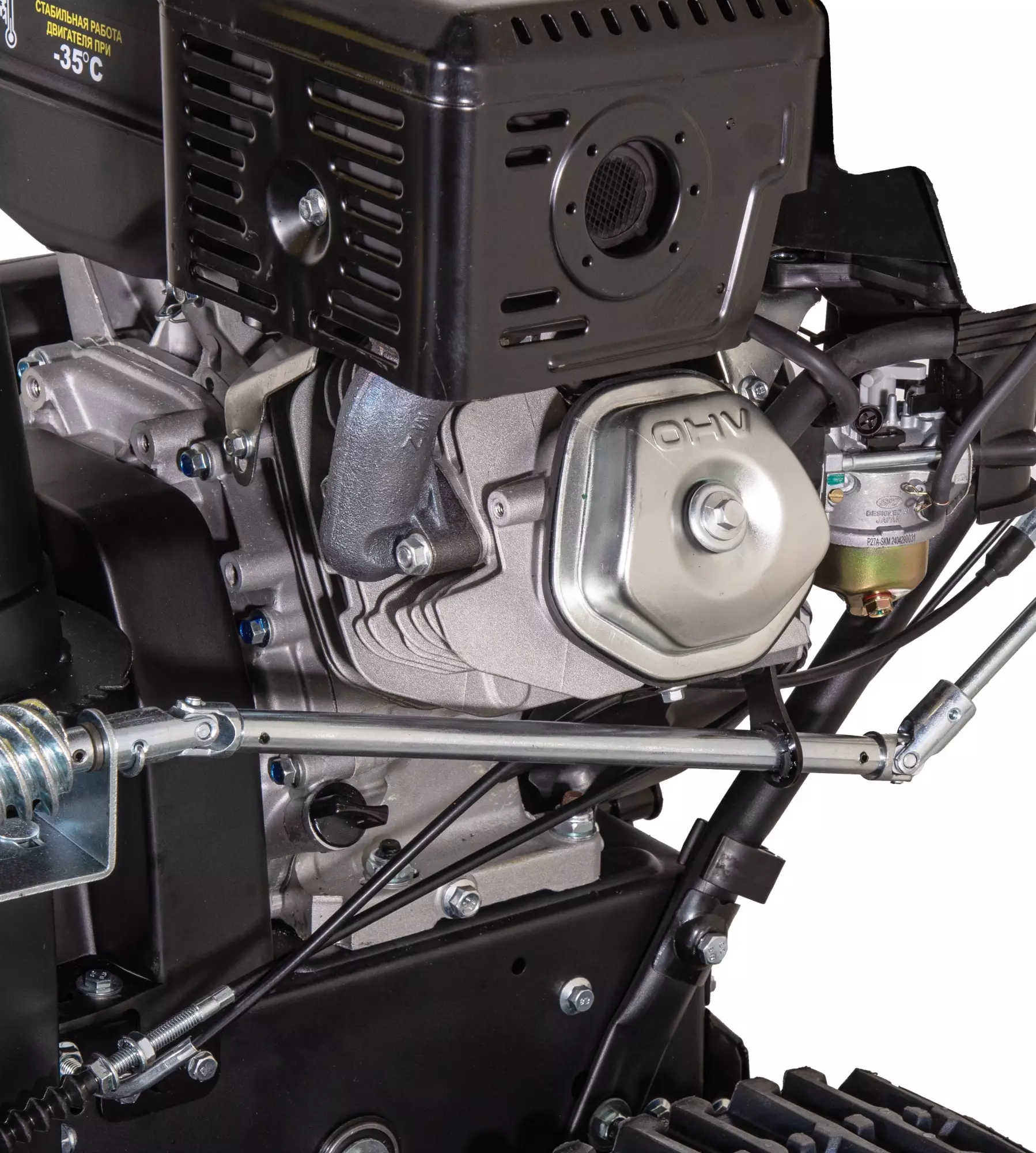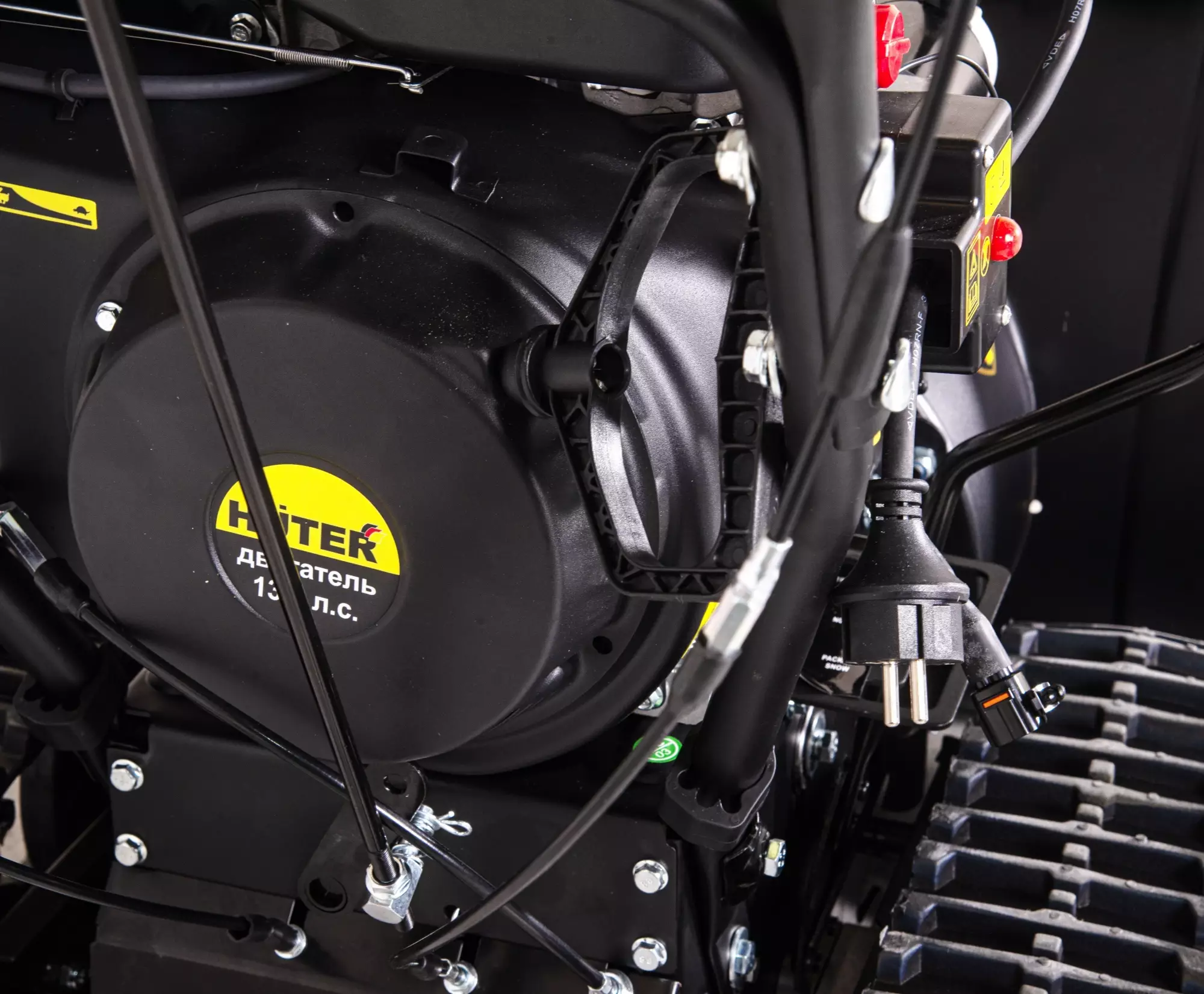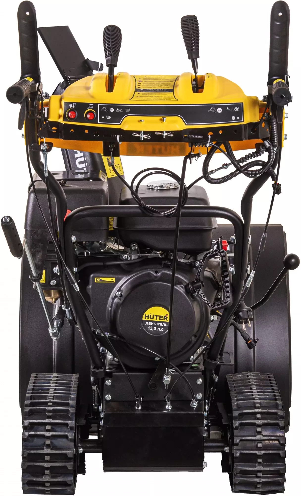 КомплектацияСнегоуборщик в сборе с гусеницами, Рычаг поворота желоба, ограничительные башмаки 2шт, рукоятка управления с панелью в разборе, крепежный комплект, паспорт изделия