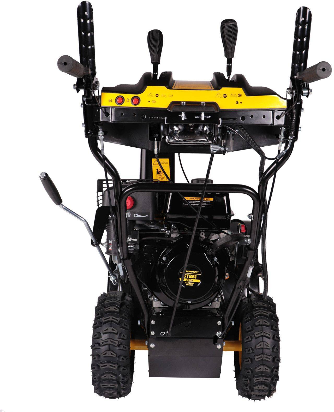 ОписаниеСнегоуборщик бензиновый Champion ST861 - в роли надежного помощника снегоуборщик с электростартером будет полезен как владельцам загородных домов с обширной территорией, так и организациям, имеющим хозяйственные помещения и гаражи, требующие расчистки снега, а также коммунальным службам.