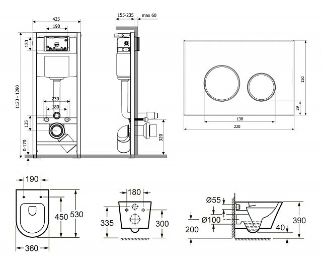 Система инсталляции имеет универсальный комплект креплений, позволяющий производить не только стандартный «прямой» монтаж рамы к стене с глубиной 155 - 235 мм, но и в случае неровности стен осуществлять «поворотный» монтаж инсталляционной системы, вплоть до установки инсталляции в угол помещения. Самонесущий модуль Lavinia Boho RelFix выполнен из стали и покрыт прочной порошковой краской методом автоматического напыления, что гарантированно защищает каркас от коррозии в течение как минимум 25 лет активной эксплуатации.
