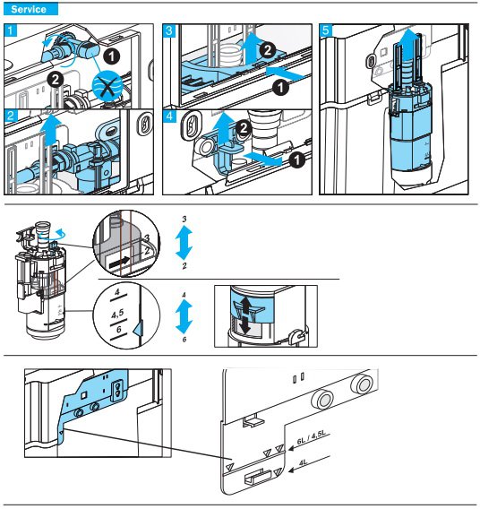 Двойной тип слива: 2/4 литра, 3/4.5 литров, 3/6 литров;