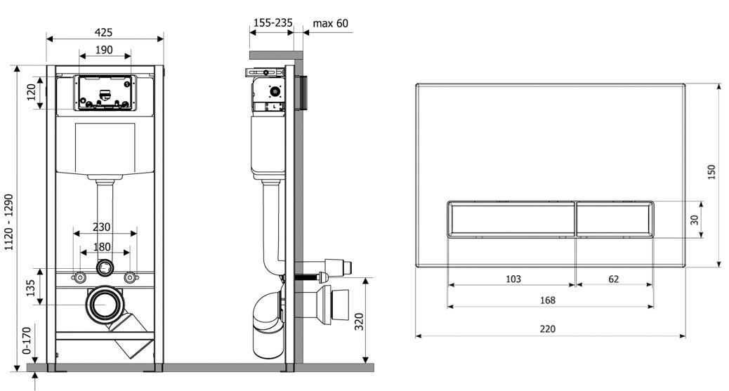 Бачок скрытого монтажа, корпус которого изготовлен из долговечного полимерного материала HDPE и является цельнолитым (бесшовным). Интенсивность потока смыва по умолчанию настроена на использование инсталляции с безободковыми подвесными унитазами.