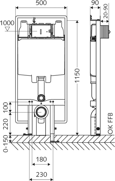 Модуль для монтажа ВН 115 см со скрытым бачком 8 см, для плоских конструкций с глубиной 9 см (тип С 90).