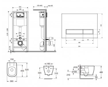 Система инсталляции по умолчанию укомплектована короткими и удлиненными кронштейнами. Удлиненный комплект креплений упрощает до минимума монтаж инсталляции в любую типовую сантехническую шахту (особенно "хрущевские" санузлы) вне зависимости от расположения стояков, водопроводных труб и других инженерных коммуникаций.