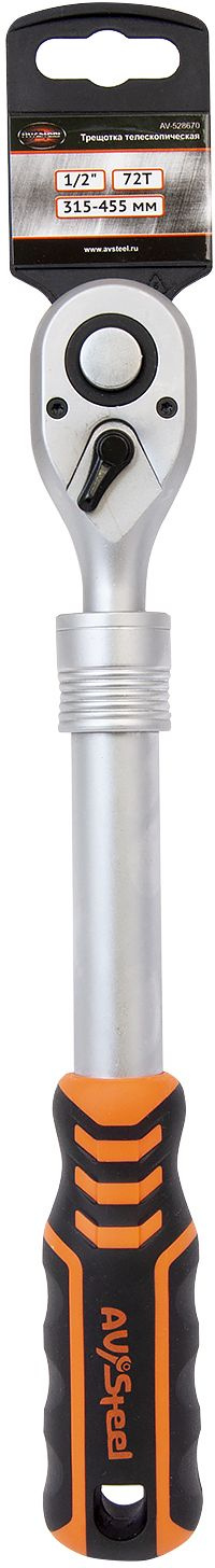 ОписаниеТелескопическая трещотка AV Steel 1/2" 72-зубца с двухкомпонентной ручкой 260-400 мм. предназначена для быстрого закручивания или откручивания гаек. 72-зубцовый механизм привода трещотки позволяет осуществлять переход в 5 град.