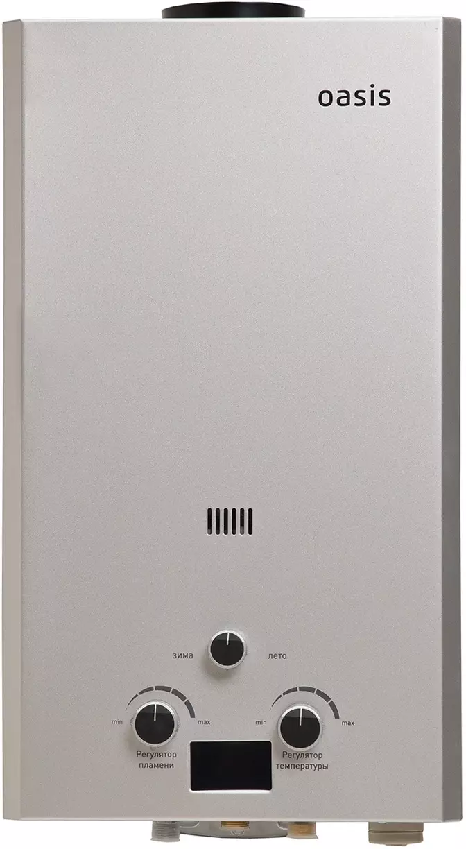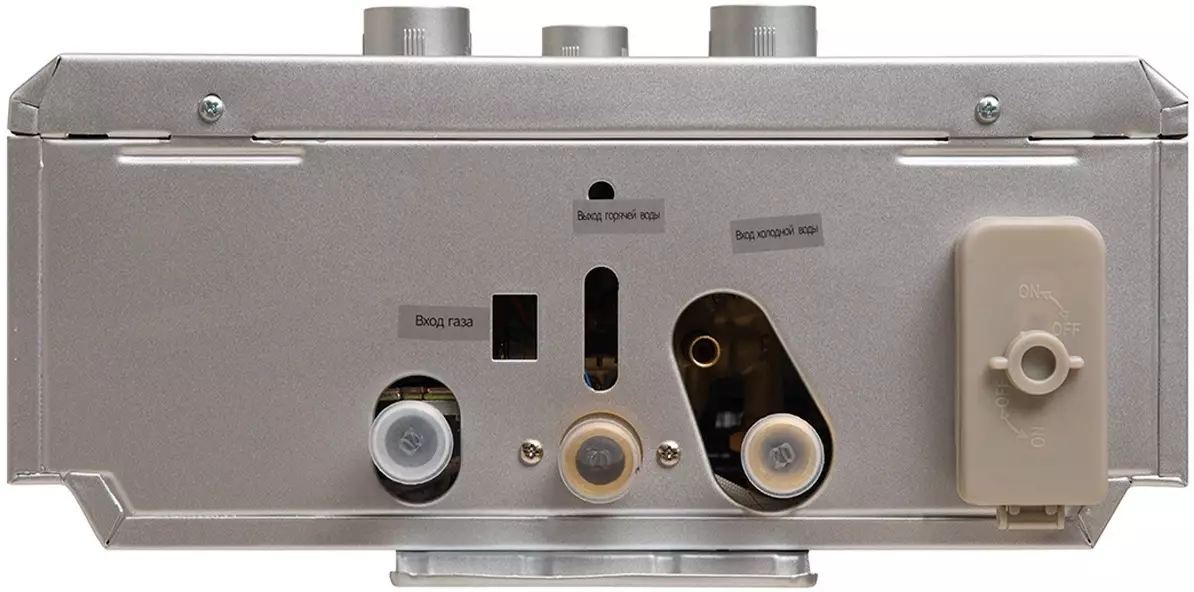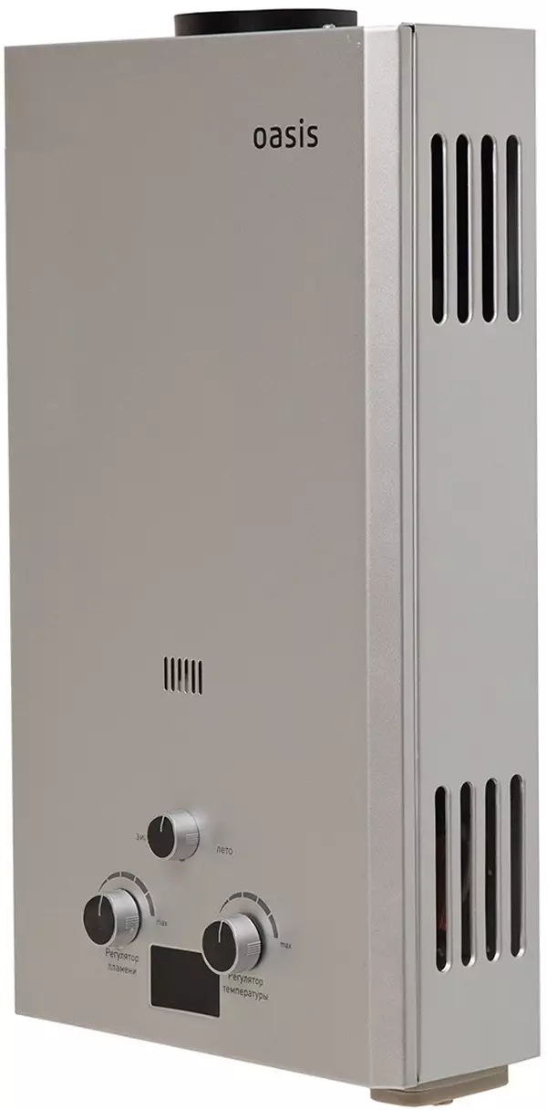 ОсобенностиЖК блок индикации температуры горячей воды, переключатель «зима-лето» для плавной регулировки горячей воды в теплое время года и экономии газа до 40-50%, высокий КПД (более 90%).
