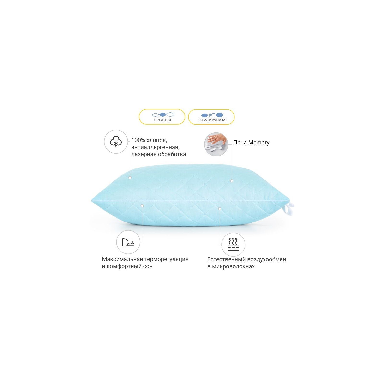 • Наповнювач 50% Піна Memory, 50% EcoSilk