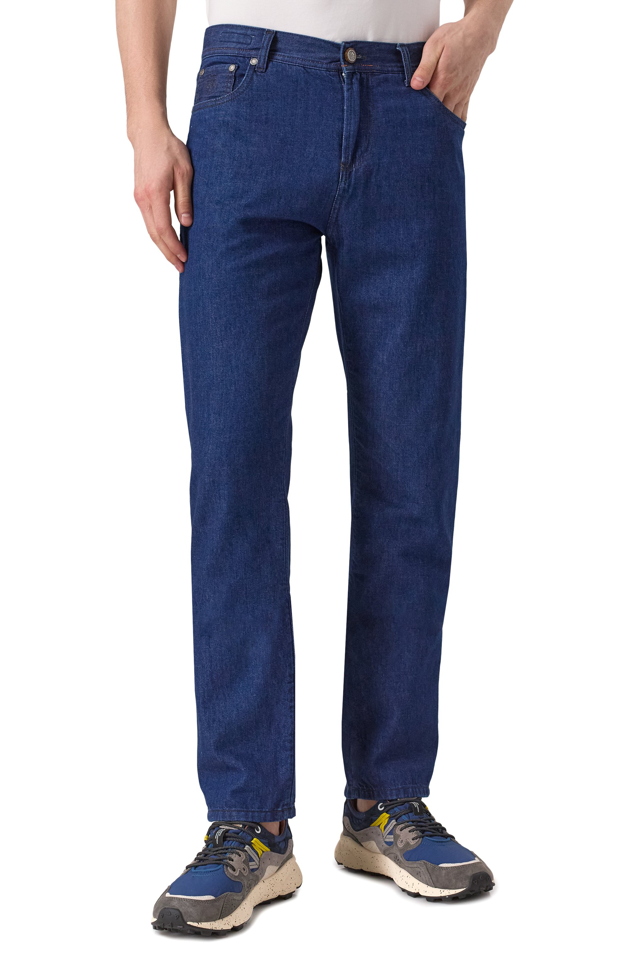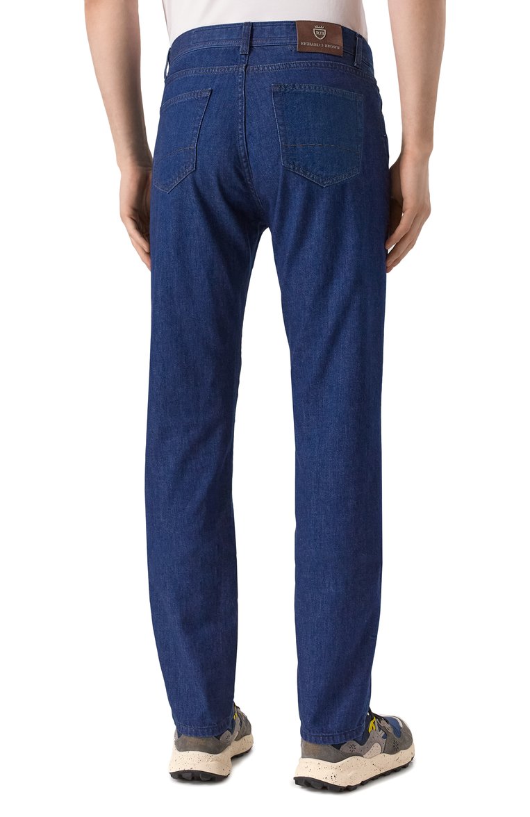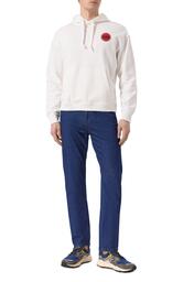 Джинсы из жесткого хлопкового денима вошли в линию Roma. Окрашенную в готовом виде модель украсили вышитой эмблемой на самом маленьком из пяти карманов и брендированным патчем на поясе сзади.