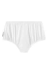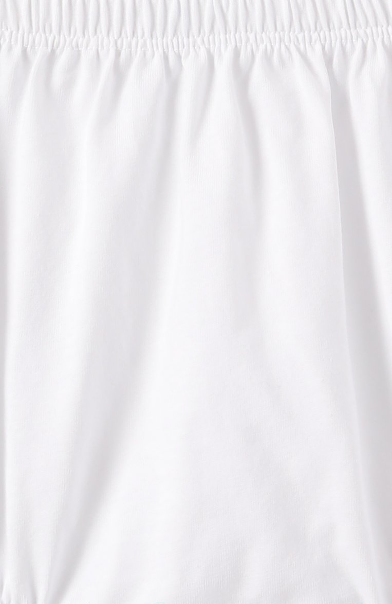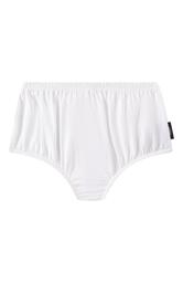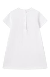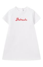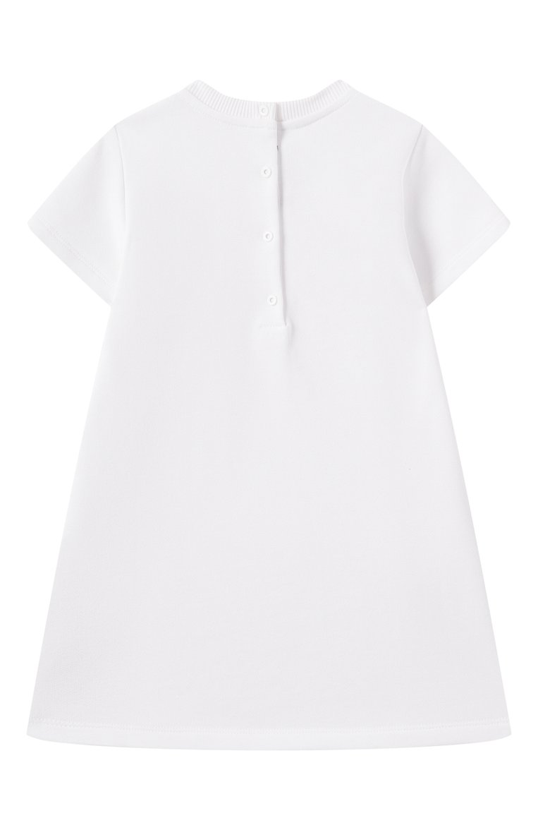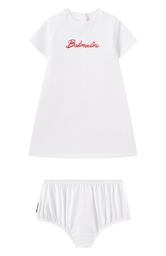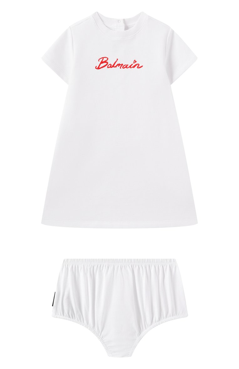 Платье с кнопочной планкой сзади выполнили из хлопкового трикотажа и украсили спереди контрастным логотипом марки. В комплект включили шорты с эластичной отделкой по краям, дополненные брендированным ярлыком.