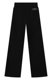 Брюки с широким поясом сшили из хлопкового трикотажа в рубчик. Отделку передних карманов, выполненную в контрастном оттенке, украсили фирменными золотистыми пуговицами Chain Lion.