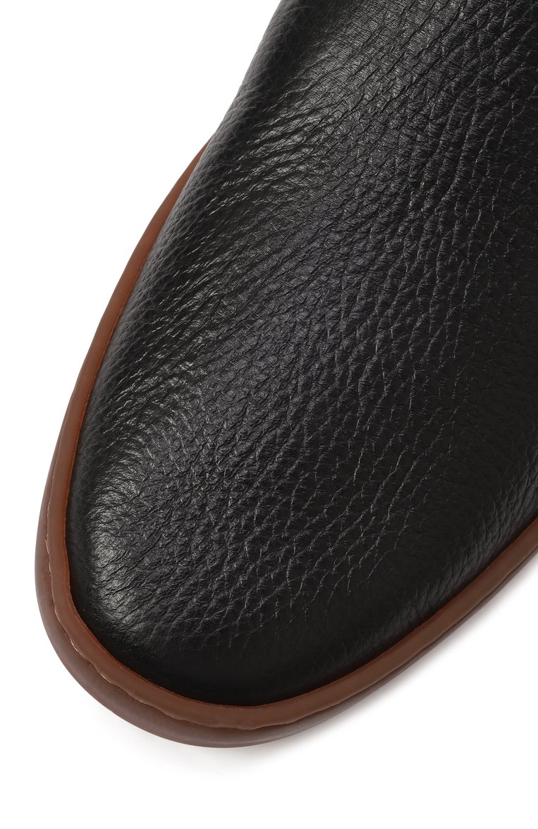 Слипоны на широкой гибкой подошве изготовили из крупнозернистой кожи оленя. Модель с эластичными вставками по бокам союзки украсили вышитой в тон литерой H на заднике.
