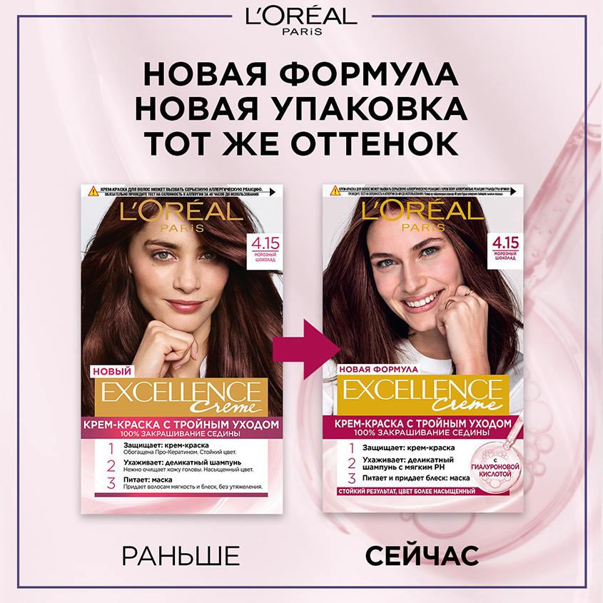 Ритуал тройного ухода: уход за цветом, уход за кожей головы, уход за волосами. Крем-краска с тройным уходом. 100% закрашивание седины. 1. Защищающая крем-краска для волос. Обогащена Про-Кератином и защищающей сывороткой для защиты волос во время окрашивания. Стойкий Цвет 2. Новый этап в ритуале ухода: ухаживающий деликатный шампунь после окрашивания с мягким pH. Деликатно очищает кожу головы и волосы после окрашивания. Насыщенный, естественный цвет 3. Легкая питательная маска для волос. Обогащена Керамидом. Питает волосы, делает их мягкими и блестящими, без утяжеления