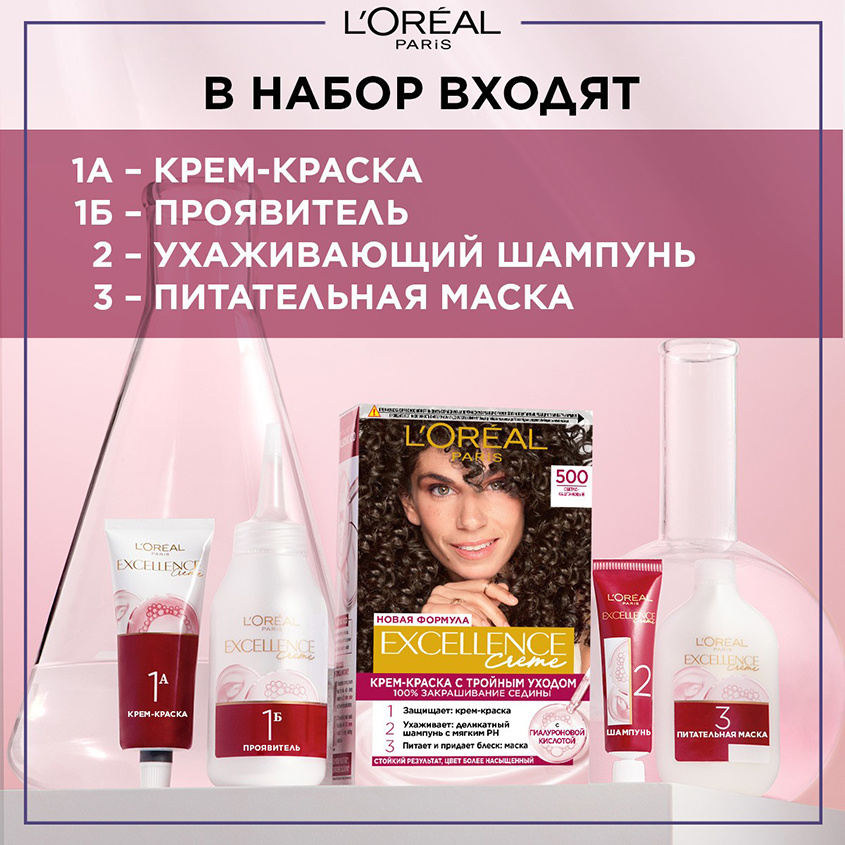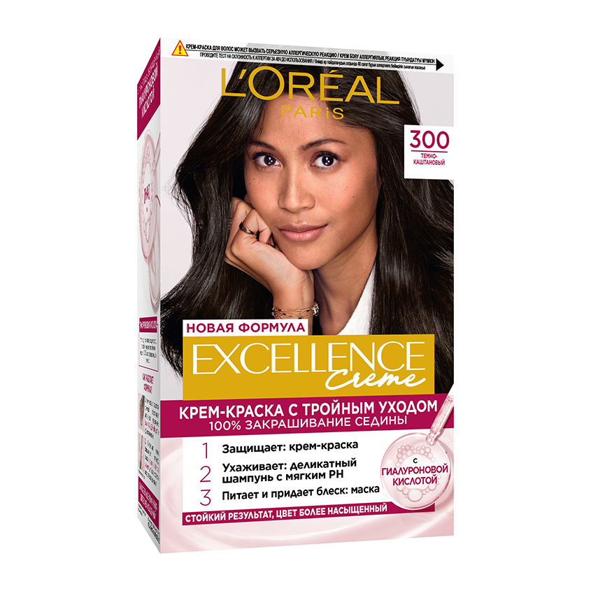 Крем-краска для волос `LOREAL` `EXCELLENCE` тон 300 Темно-каштановый