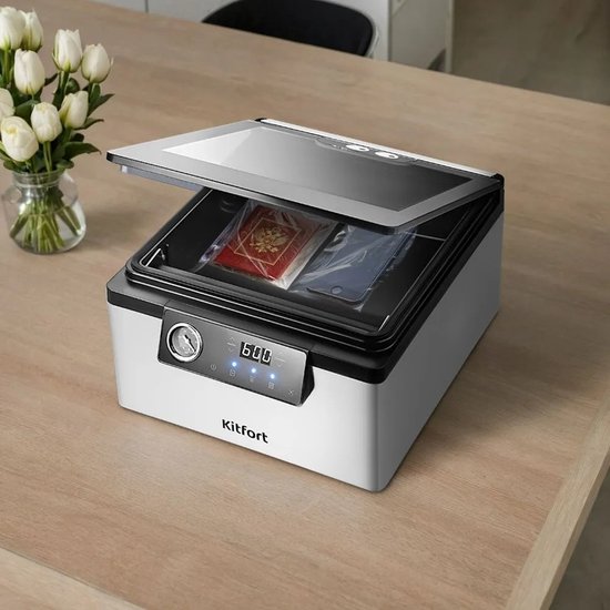 • Режимы сухие продукты, влажные продукты, запаивание без вакуума, мгновенная остановка