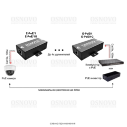OSNOVO E-PoE/1G PoE удлинитель 10/100/1000M Gigabit Ethernet до 500м. Увеличение расстояния передачи данных + питание на 100м. При каскадном подключении - 2 x E-Poe/1G: до 300м (до 12W), 3 x E-Poe/1G: