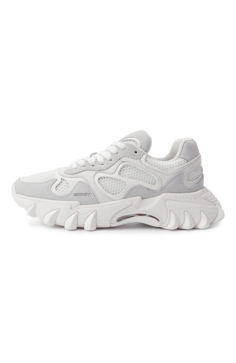 Кроссовки B-East с сетчатыми вставками сшили из гладкой телячьей кожи и замши. Скульптурную амортизирующую подошву дополнили рельефными накладками, имитирующими когти льва. Модель украсили вышитым логотипом на язычке и тисненой эмблемой на заднике.