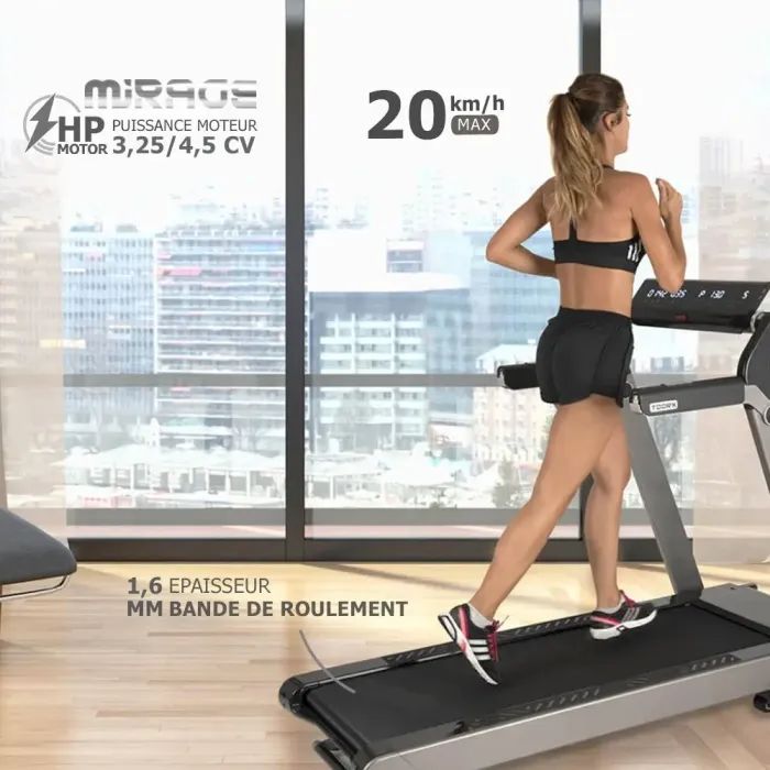 ДодатковоUSB порт , Bluetooth-динаміки для музики , підтримка додатків через APP READY 3.0 , ключ аварійного зупинення , Вбудований приймач для бездротового нагрудного кардіодатчика. , Вимірювання пульсу , Регулювання кута нахилу , Сенсорні датчики вимірювання пульсу , Підставка для смартфона/планшета. , Амортизація , компенсатори нерівності підлоги , транспортувальні ролики