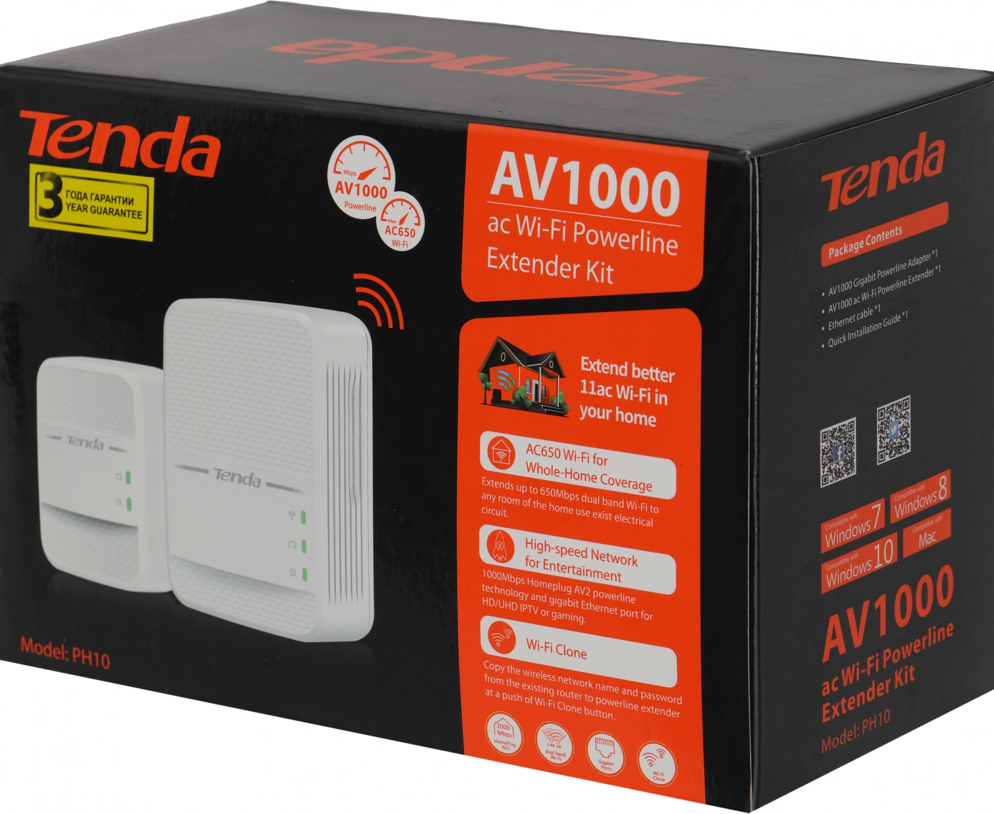 Сетевой адаптер HomePlug AV/Wi-Fi Tenda PH10 AC650 Gigabit Ethernet (ант.внутр.) (упак.:2шт)