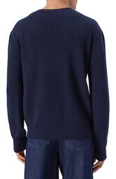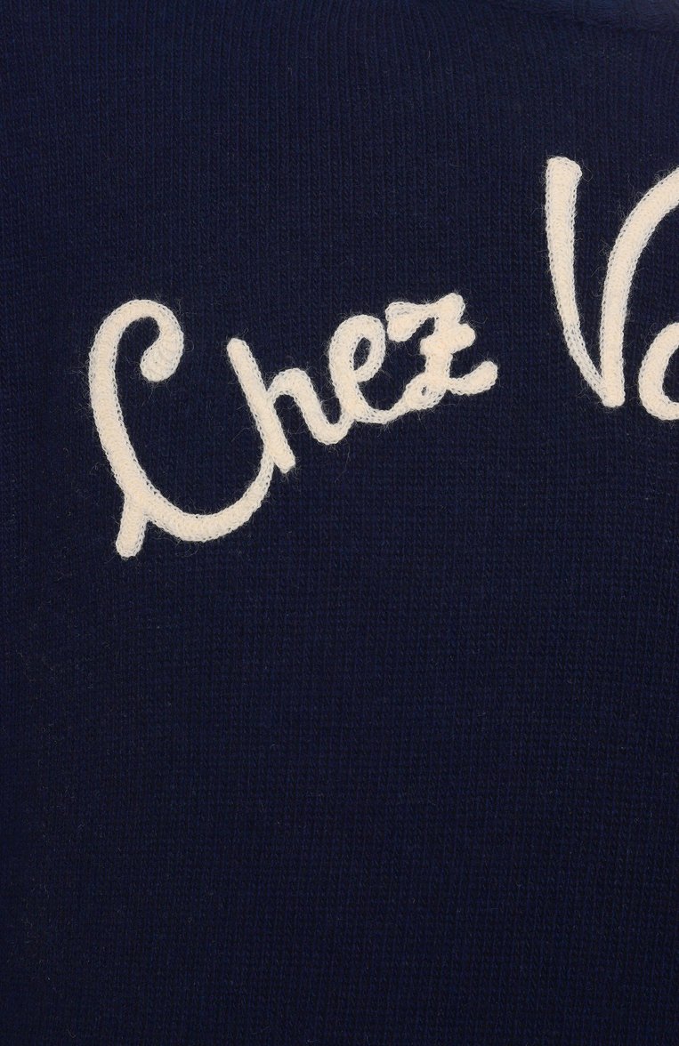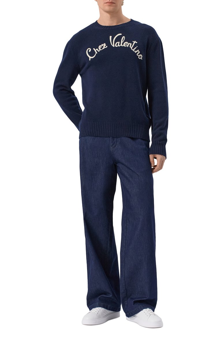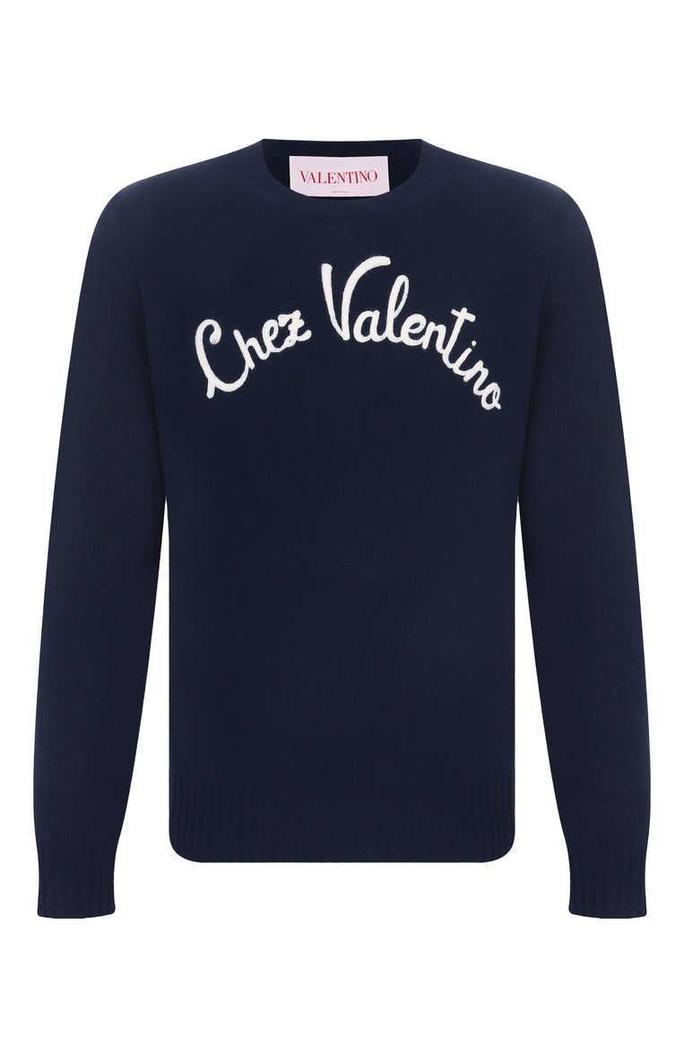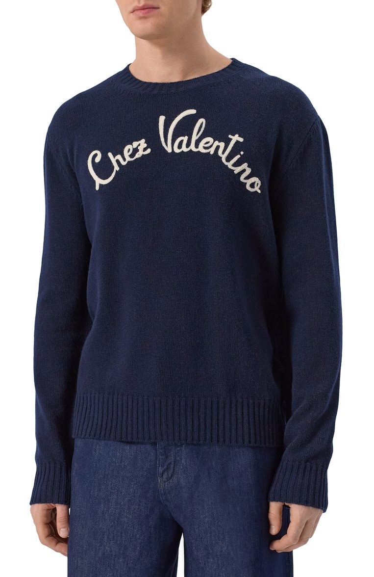 Джемпер из трикотажа плотностью семь петель на дюйм связали из шерсти первого пострига. Модель с контрастной вышивкой Chez Valentino может стать акцентом в повседневном образе.