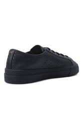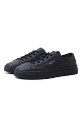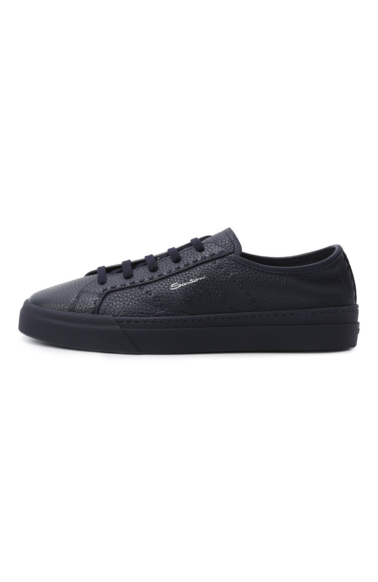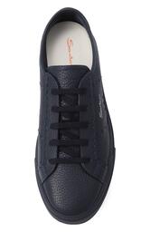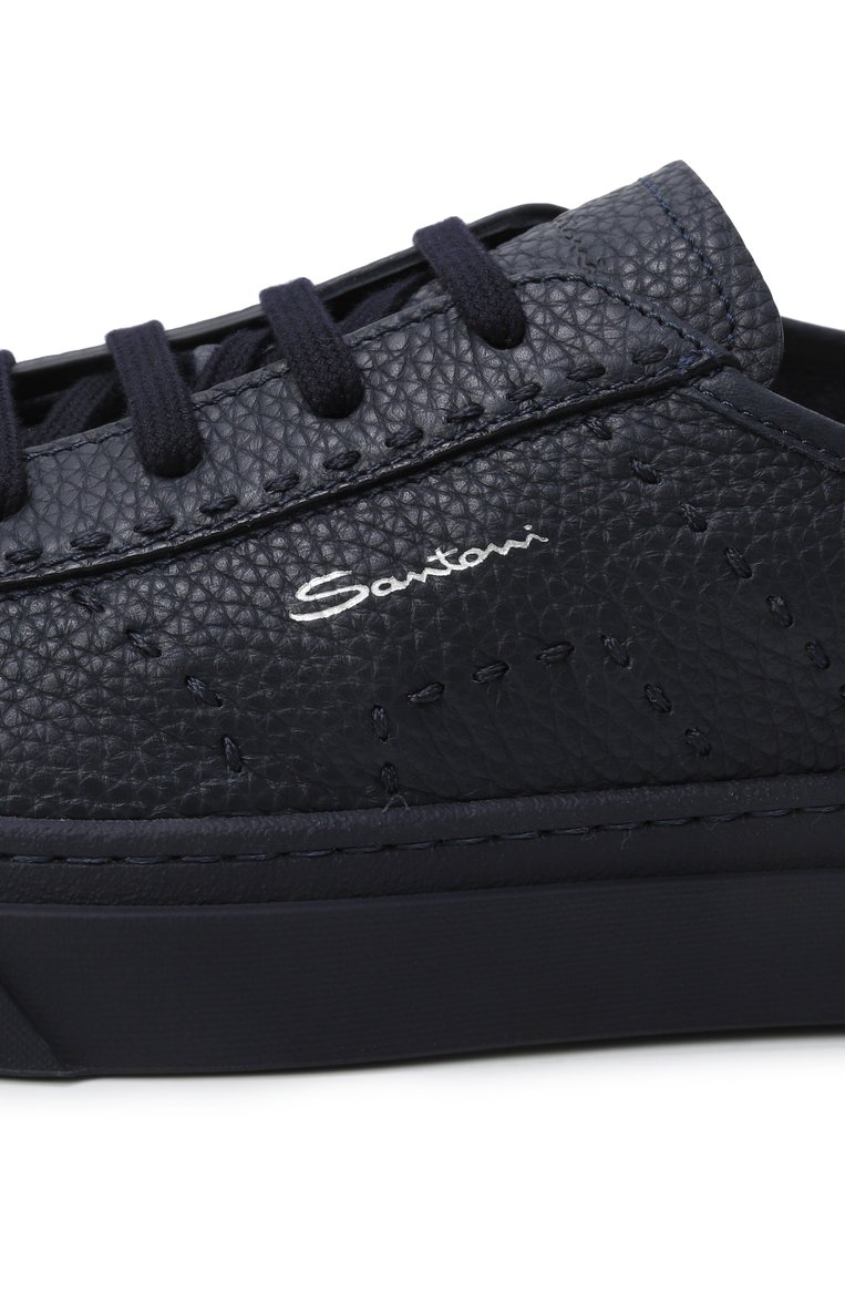 Кеды Double Buckle из зернистой кожи оправдывают свое название ручной строчкой, которая формирует силуэт перемычки двойных монков. Фирменную деталь подчеркнули контрастным логотипом, а задник – стежком знакового оттенка Arancio Santoni. Пару поставили на брендированную подошву в тон.