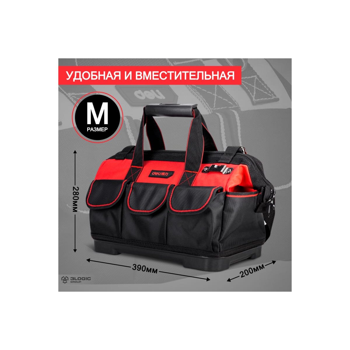 Сумка для инструментов DELI DL43031 (11110) с жест. пластиковым дном 390x200x280мм
