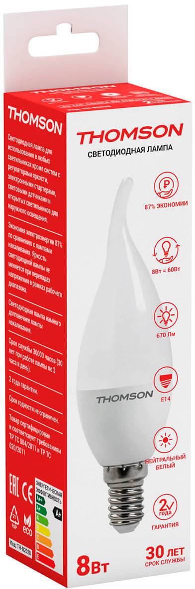 Лампа светодиодная Thomson TH-B2028, 8Вт, цоколь E14, белый нейтральный, 4000К