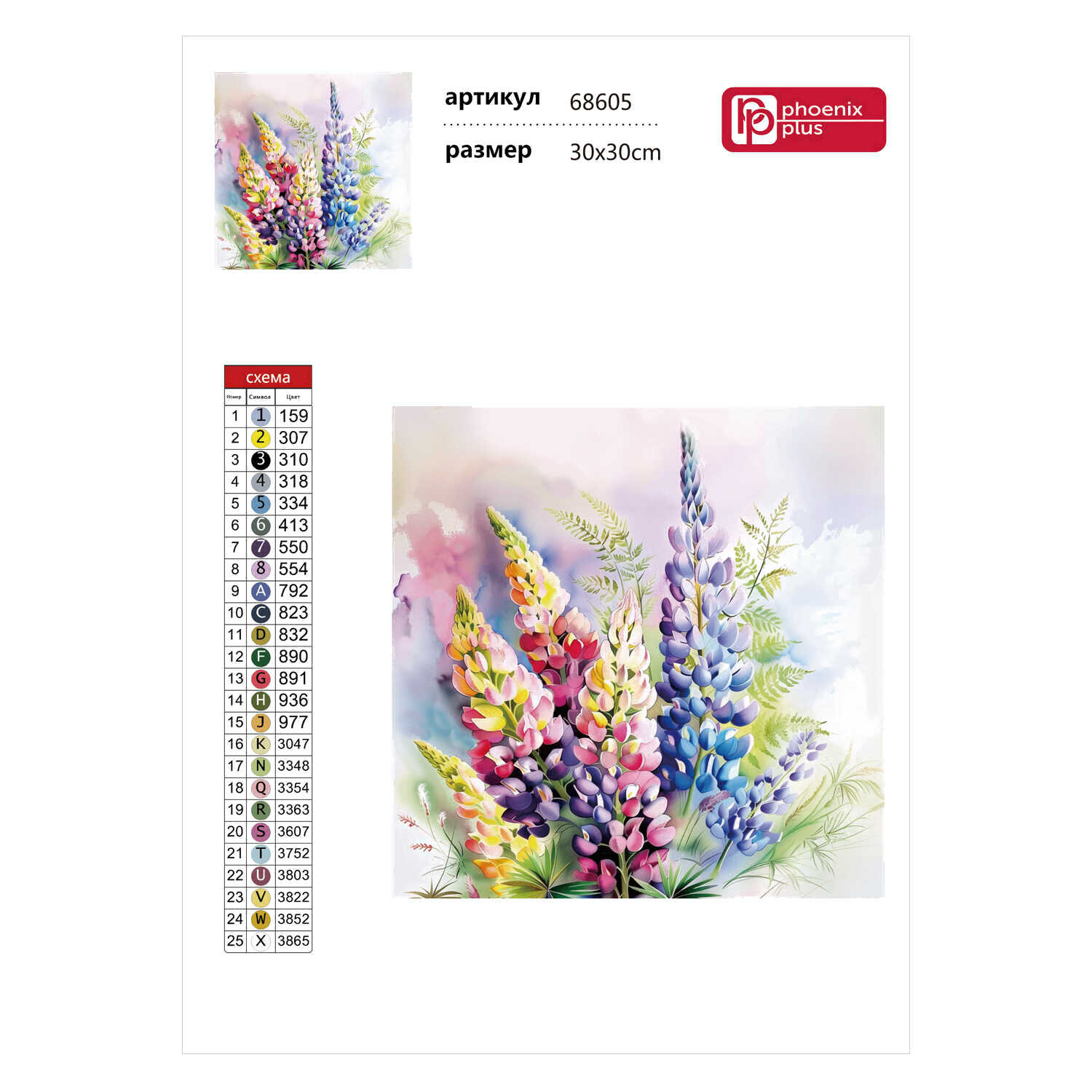Набор алмазной вышивки Феникс+ Акварельные люпины / 68605