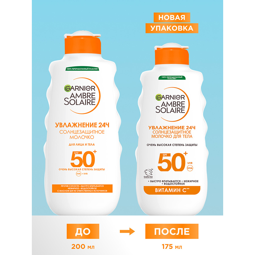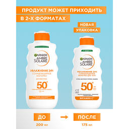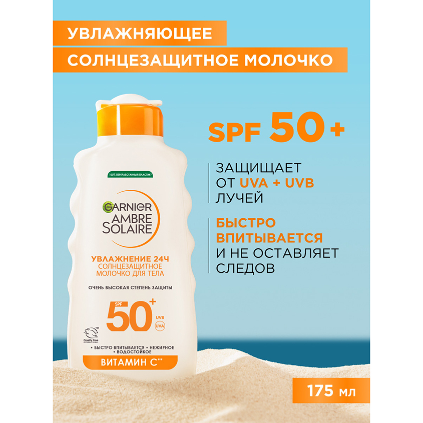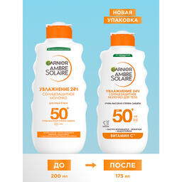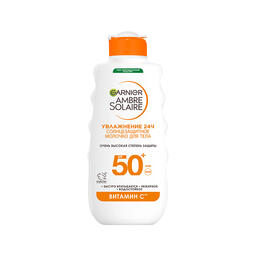 Молочко для тела `GARNIER` AMBRE SOLAIRE Витамин C солнцезащитное SPF 50+ (увлажнение 24ч) 175 мл