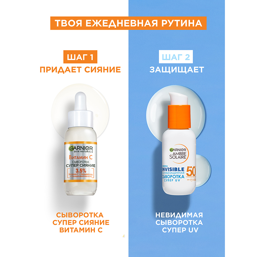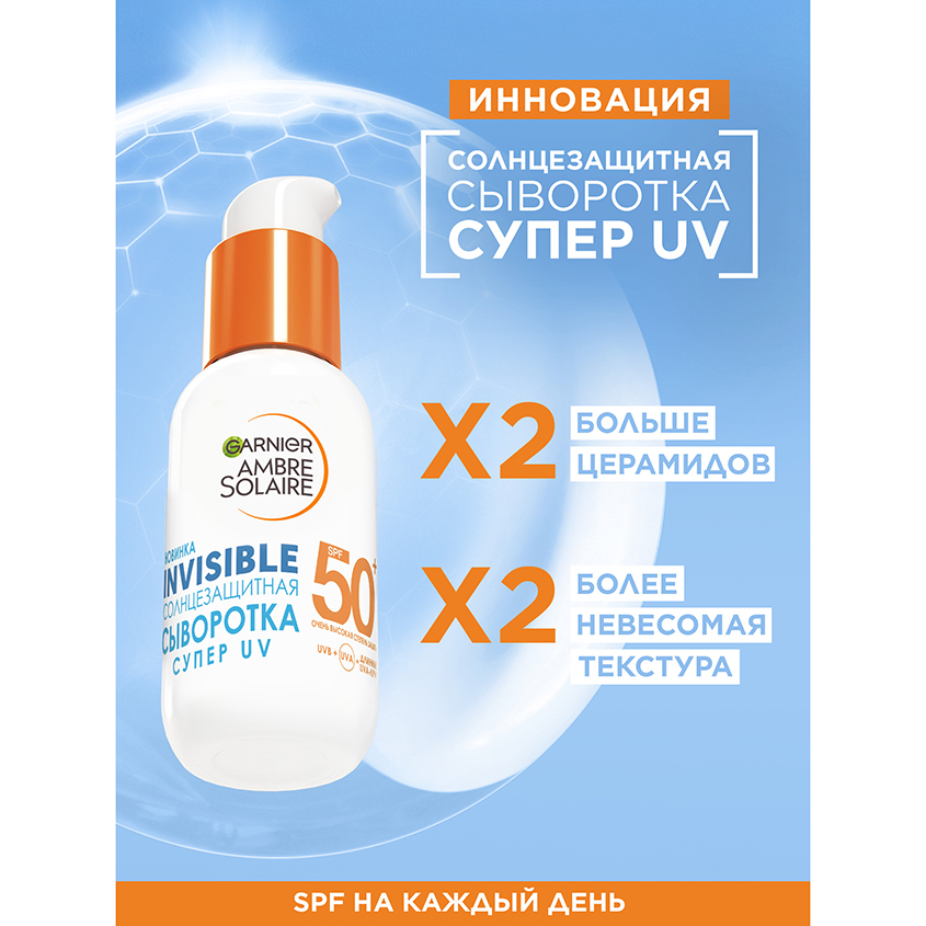 Сыворотка для лица `GARNIER` AMBRE SOLAIRE СУПЕР UV невидимая солнцезащитная SPF 50+ 30 мл